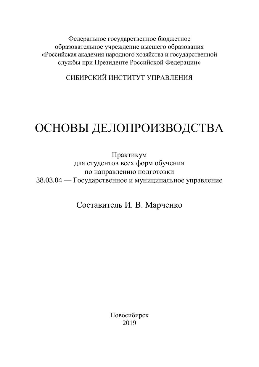 Основы делопроизводства: практикум