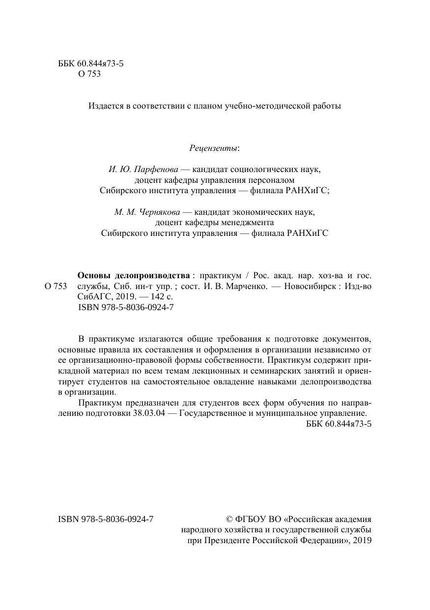 В практикуме излагаются общие требования к подготовке документов, основные правила их составления и оформления в организации независимо от ее организационно-правовой формы собственности. Практикум содержит при-кладной материал по всем темам лекционных и семинарских занятий и ориен-тирует студентов на самостоятельное овладение навыками делопроизводства в организации. Практикум предназначен для студентов всех форм обучения по направ-лению подготовки 38.03.04 — Государственное и муниципальное управление.