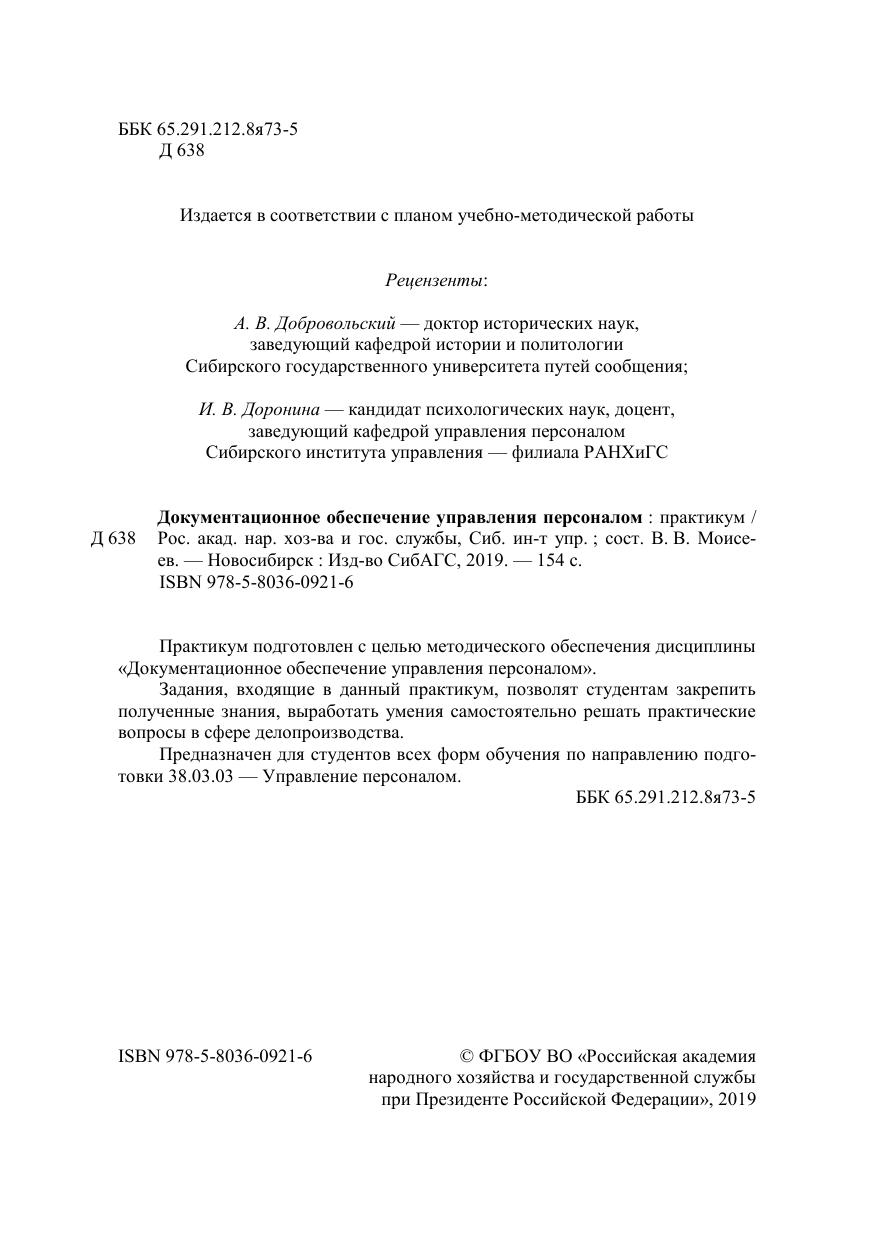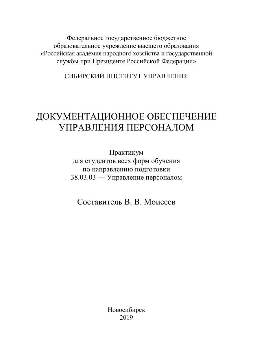 Практикум подготовлен с целью методического обеспечения дисциплины «Документационное обеспечение управления персоналом». Задания, входящие в данный практикум, позволят студентам закрепить полученные знания, выработать умения самостоятельно решать практические вопросы в сфере делопроизводства. Предназначен для студентов всех форм обучения по направлению подго-товки 38.03.03 — Управление персоналом.