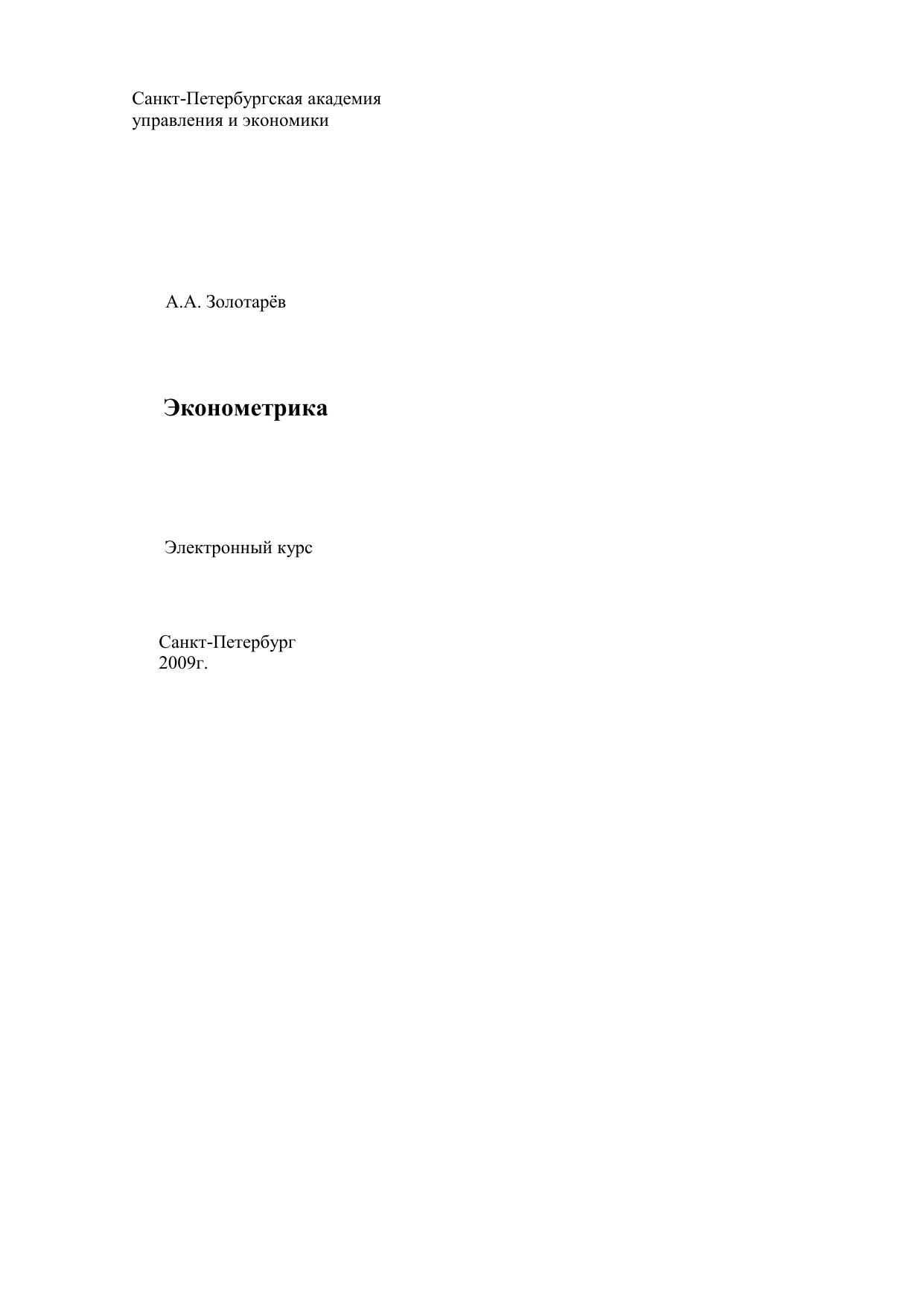 Эконометрика: Электронное учебное пособие