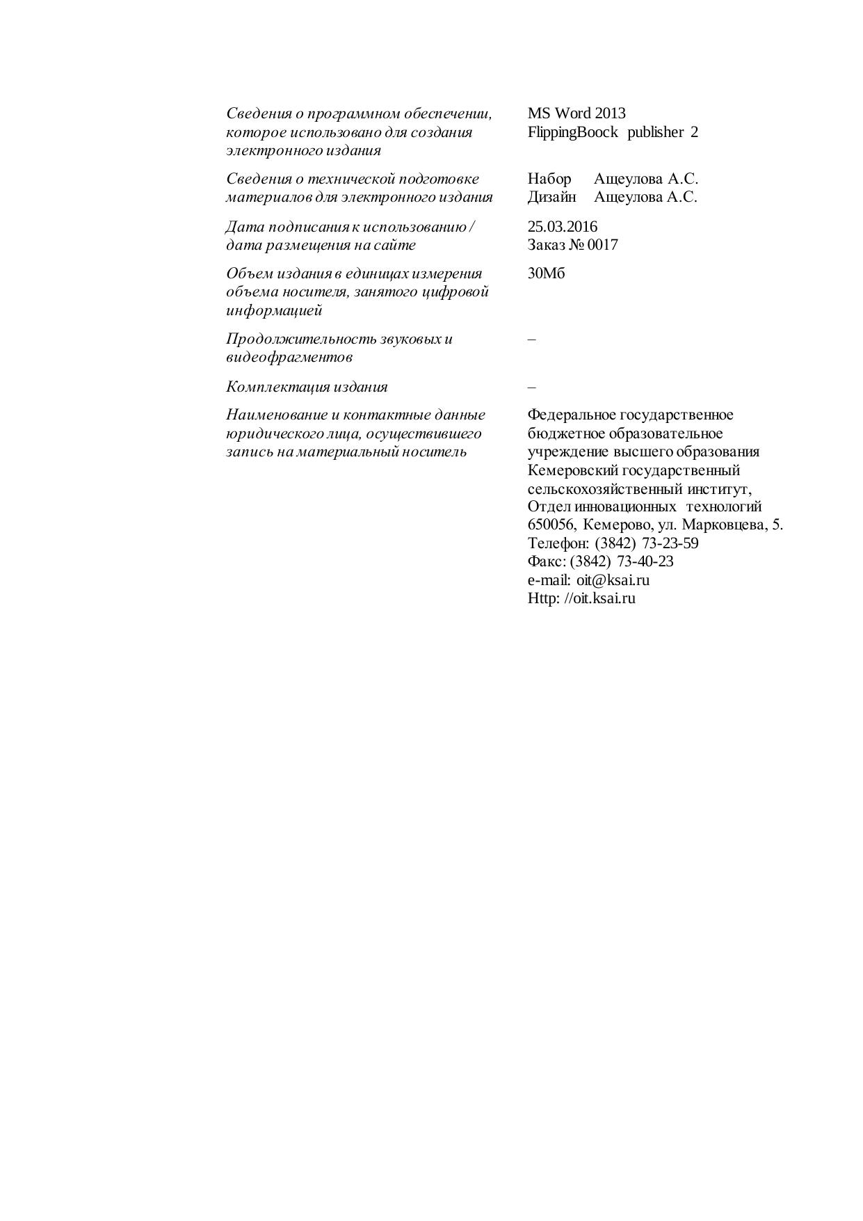 Издательство: Кузбасская государственная селькохозяйственная академия