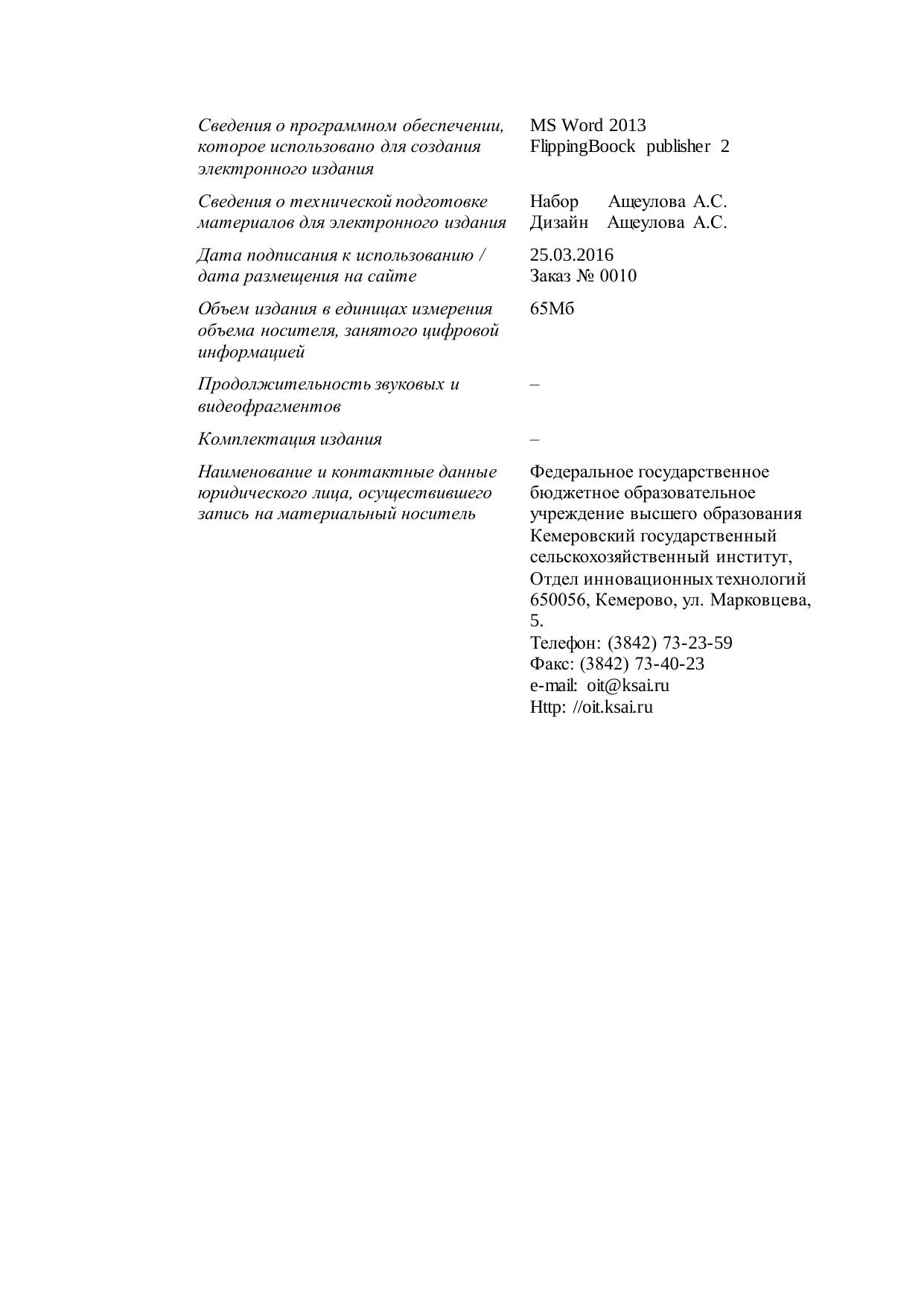 Издательство: Кузбасская государственная селькохозяйственная академия