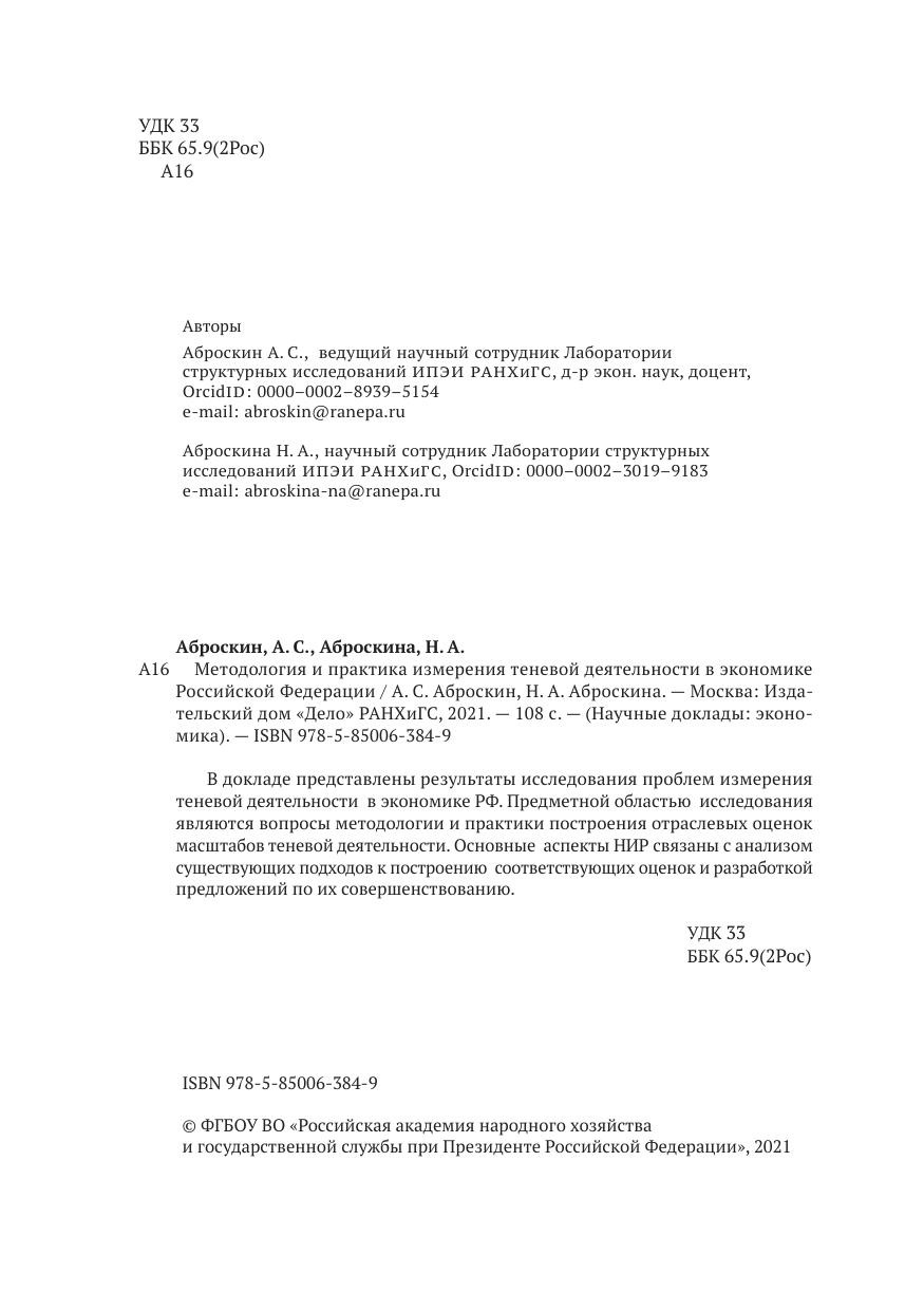 Методология и практика измерения теневой деятельности в экономике Российской Федерации