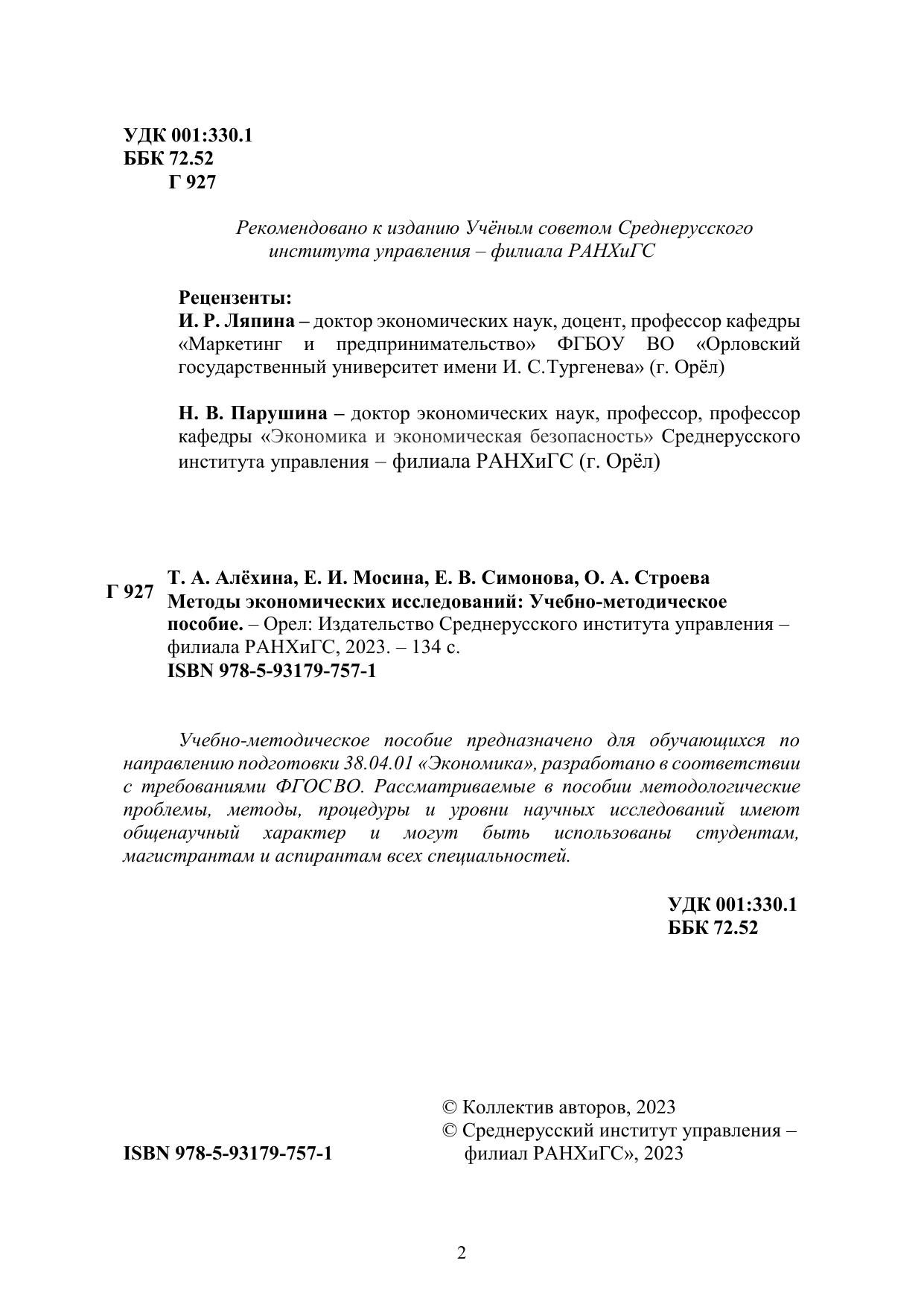 Учебно-методическое пособие предназначено для обучающихся по направлению подготовки 38.04.01 «Экономика», разработано в соответствии с требованиями ФГОС ВО. Рассматриваемые в пособии методологические проблемы, методы, процедуры и уровни научных исследований имеют общенаучный характер и могут быть использованы студентам, магистрантам и аспирантам всех специальностей.