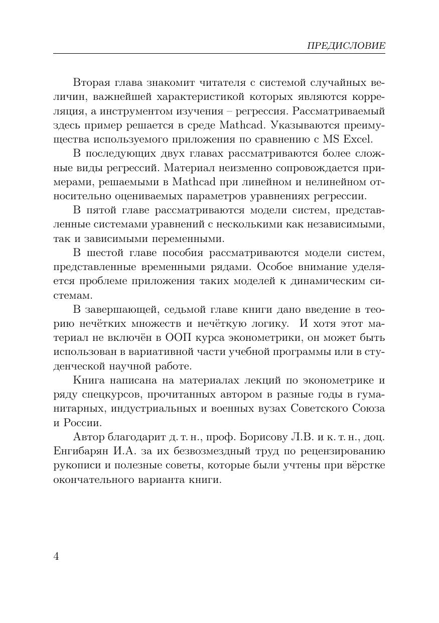 В учебном пособии излагаются методы построения и оценки эконометрических моделей. Книга отличается от подобных изданий тем, что, во-первых, в ней содержится применение динамических моделей для прогнозирования правонарушений террористического и экстремистского характера, основанное на реальных статистических данных. Во-вторых, рассматривается использование теории нечетких множеств в инженерных, эконометрических и других исследованиях. Приводится множество примеров по каждой теме. В конце каждой главы даны контрольные вопросы для самопроверки. Краткость изложения делает пособие ценным подспорьем при ограниченных сроках на подготовку как в семестре, так и в период сессии. Книга рассчитана на студентов бакалавриата вузов, обучающихся по направлениям подготовки, входящих в УГС «Экономика и управление». Она может быть полезной также специалистам в области экономики предприятия, юристам и специалистам в области экономической и гражданской безопасности.