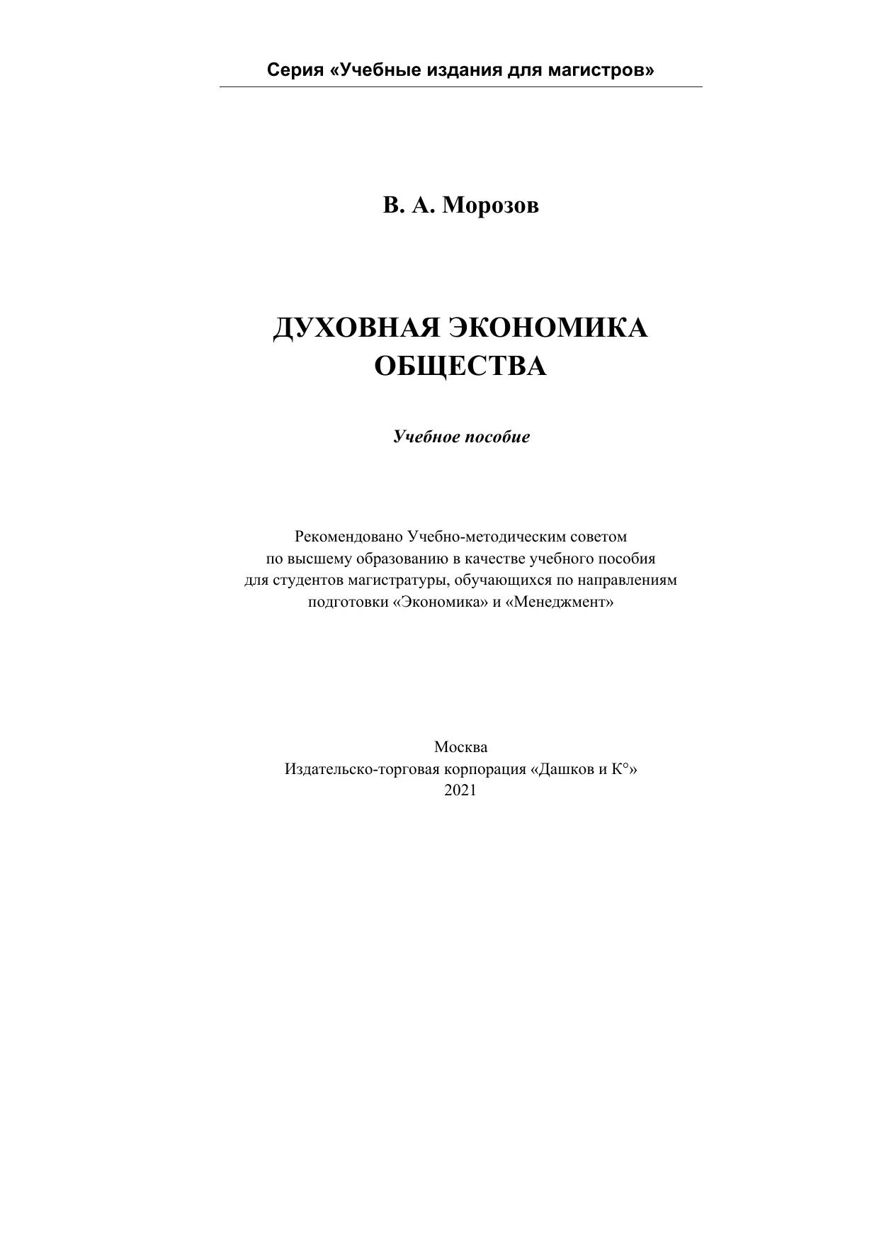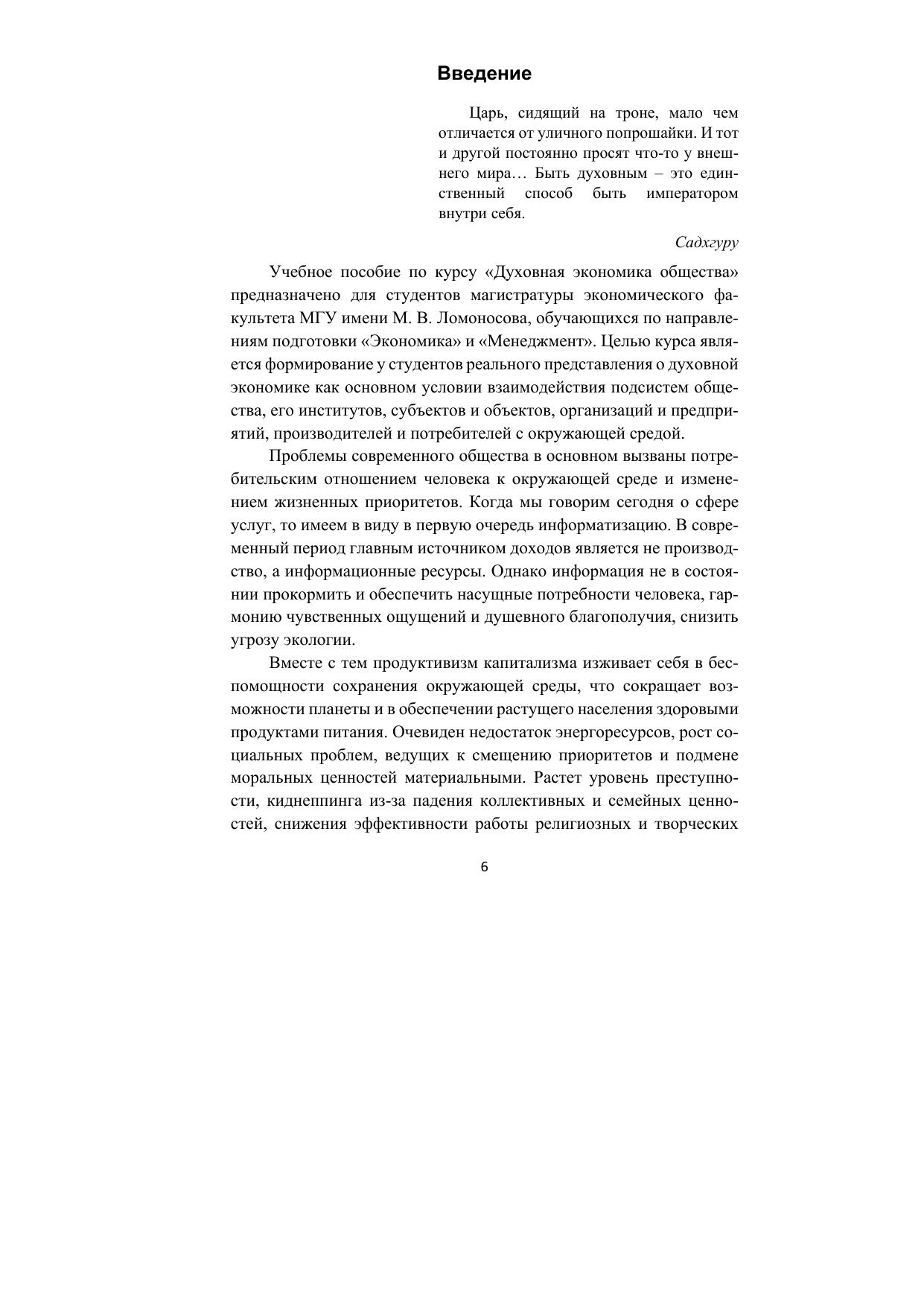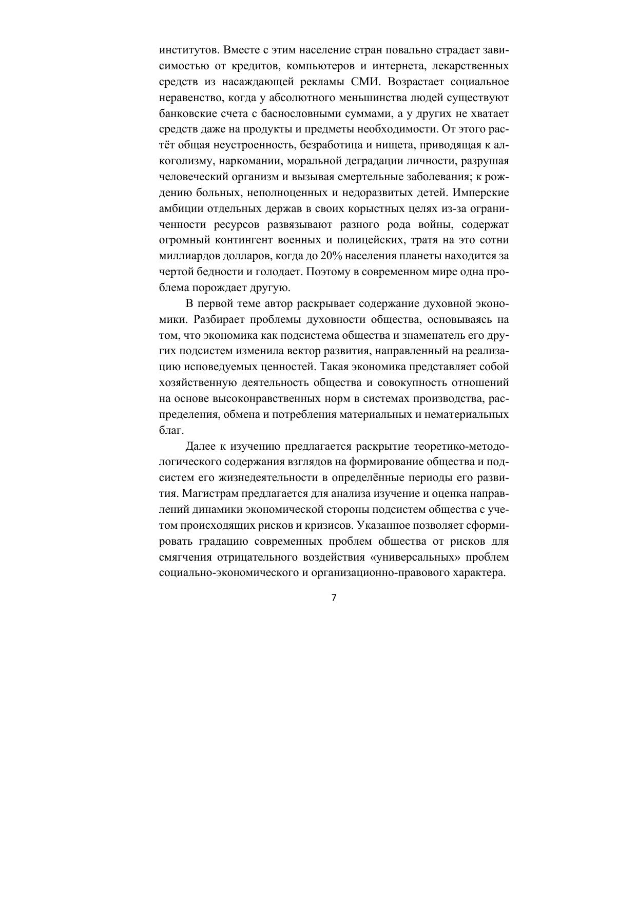 В учебном пособии представлено шесть основных тем с подробным описанием и раскрытием вопросов формирования духовной экономики как условия взаимодействия подсистем общества, субъектов и объектов, организаций-институтов. Определены общие предпосылки совместимости научных школ в области экономики и управления, с выявлением сходств и различий в подходах к изучению и разрешению проблем.