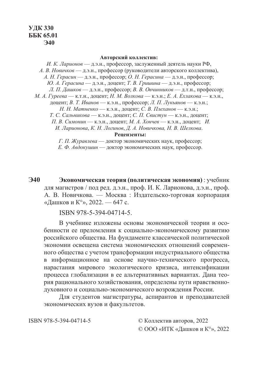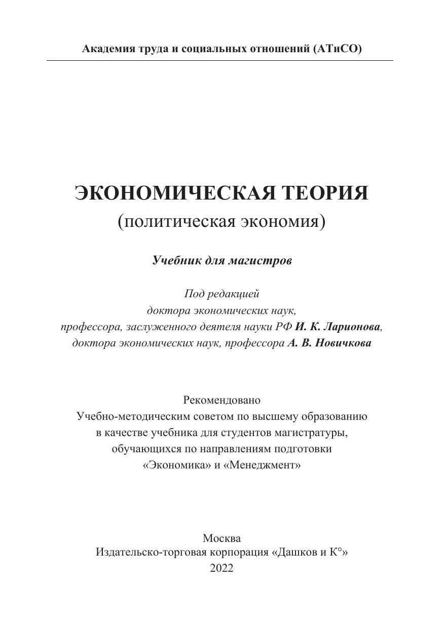 В учебнике изложены основы экономической теории и особенности ее преломления к социально-экономическому развитию российского общества. На фундаменте классической политической экономии освещена система экономических отношений современного общества с учетом трансформации индустриального общества в информационное на основе научно-технического прогресса, нарастания мирового экологического кризиса, интенсификации процесса глобализации в ее альтернативных вариантах. Дана теория рационального хозяйствования, определены пути нравственно-духовного и социально-экономического возрождения России.