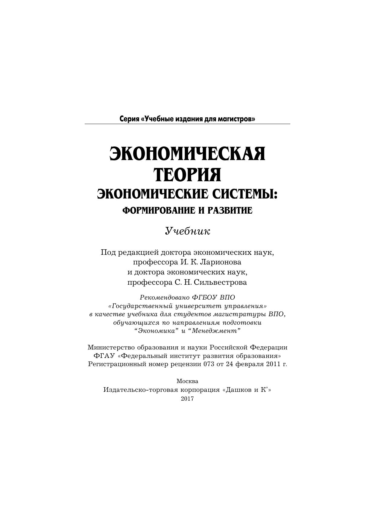 Данный учебник для магистров не имеет аналогов. В нем в систематизированном виде реализуется еще не вошедший в практику учебного процесса высших учебных заведений подход к экономике как к структурированной совокупности динамично развивающихся многоуровневых систем, подвергаемых целенаправленному воздействию системного порядка, с учетом альтернативных возможностей и стратегических перспектив. Для студентов, обучающихся в магистратуре, преподавателей вузов, а также государственных служащих, занятых вопросами стратегического управления.