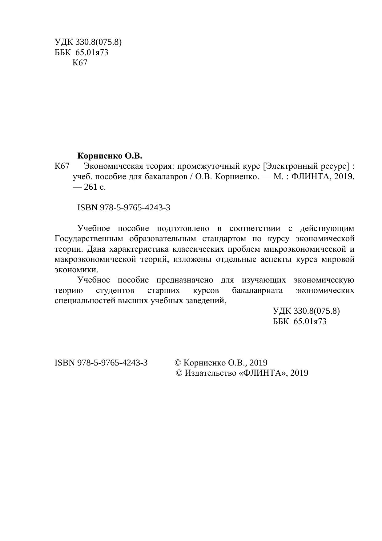 Учебное пособие предназначено для изучающих экономическую теорию студентов старших курсов бакалавриата экономических специальностей высших учебных заведений,