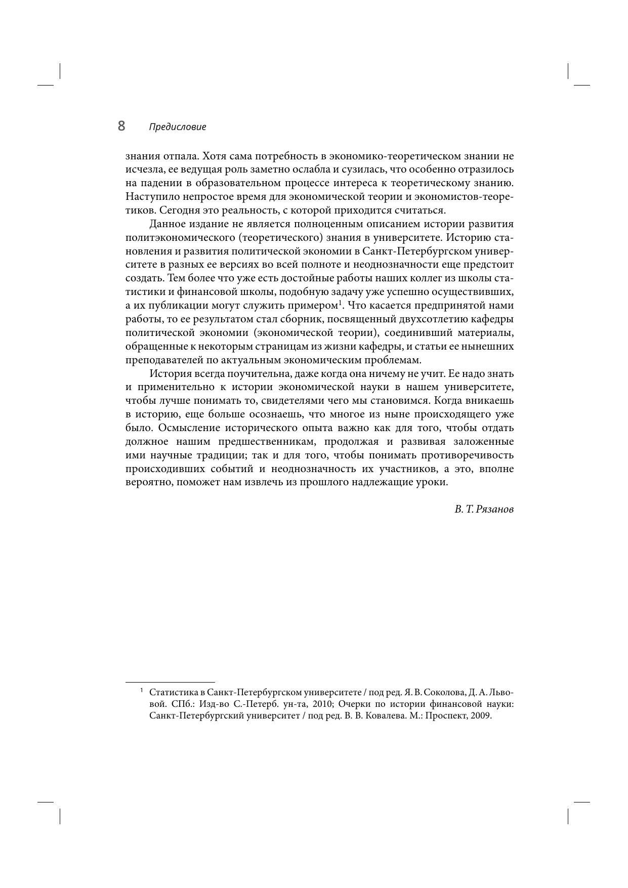 Сборник статей посвящен двухсотлетию создания кафедры политической экономии (экономической теории) в Санкт-Петербургском университете: истории становления и развития теории экономики, педагогической и научной деятельности сотрудников кафедры, их вкладу в формирование российской экономической школы. Особое внимание уделено современному состоянию научных исследований, проводимых на кафедре экономической теории СПбГУ. Разрабатываемые научные направления нашли отражение в статьях сотрудников кафедры, в которых исследуются теоретико-методологические вопросы и проблемы социально-экономического развития России. Книга предназначена для студентов, аспирантов и преподавателей экономических вузов и всех, кто интересуется историей экономической науки и современными проблемами развития экономики.
