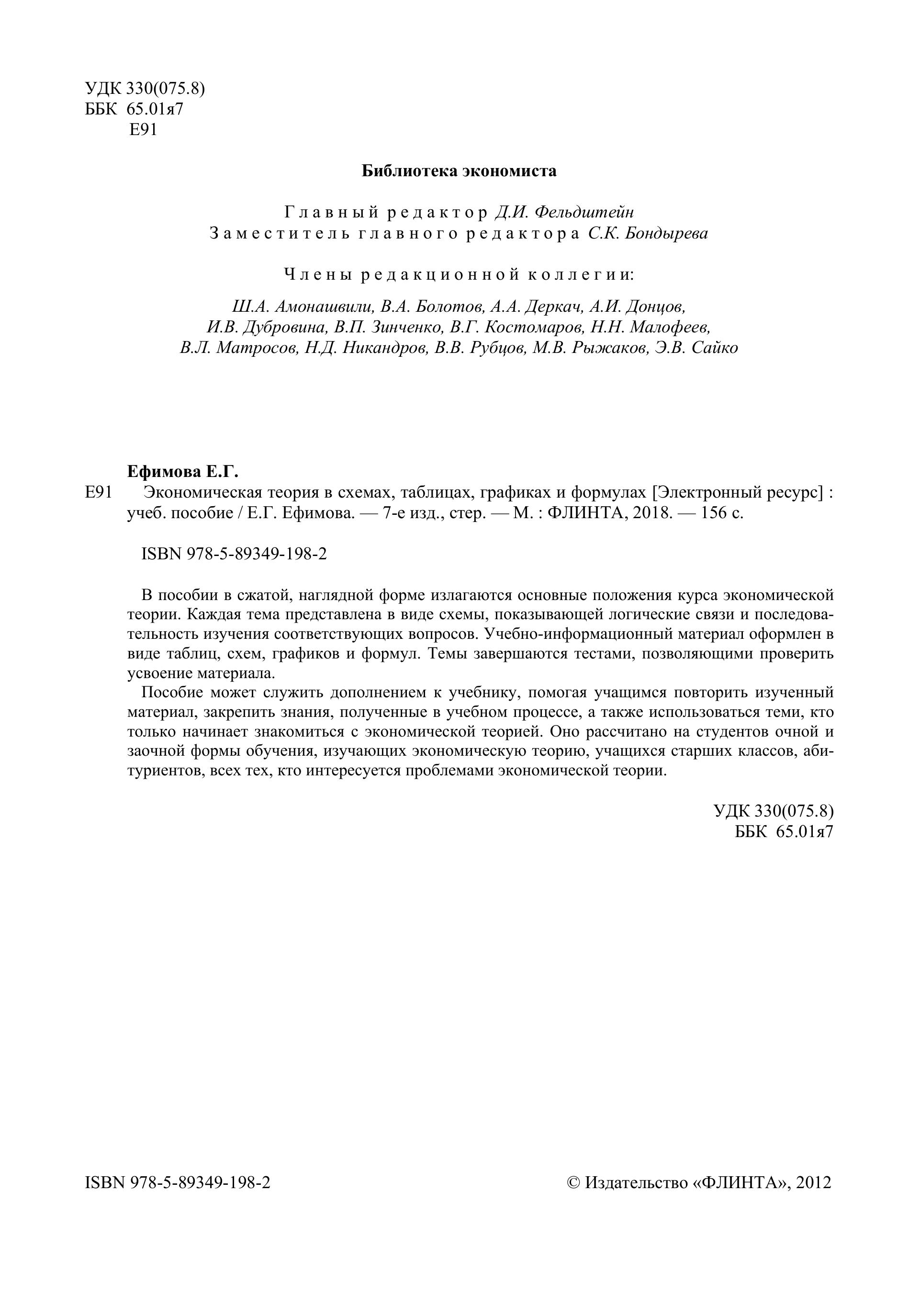Пособие может служить дополнением к учебнику, помогая учащимся повторить изученный материал, закрепить знания, полученные в учебном процессе, а также использоваться теми, кто только начинает знакомиться с экономической теорией. Оно рассчитано на студентов очной и заочной формы обучения, изучающих экономическую теорию, учащихся старших классов, абитуриентов, всех тех, кто интересуется проблемами экономической теории.