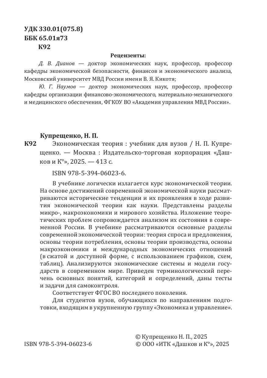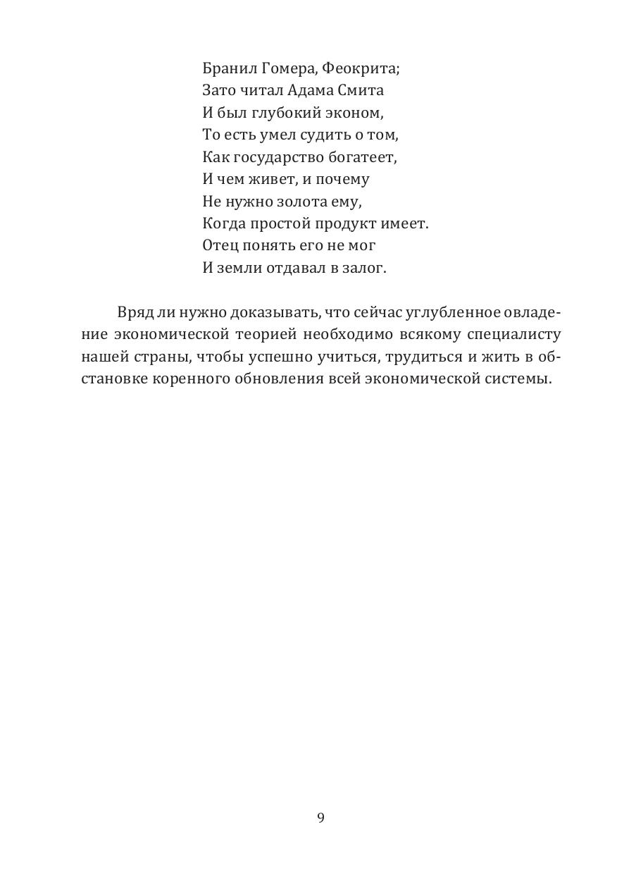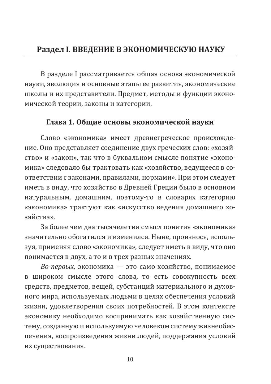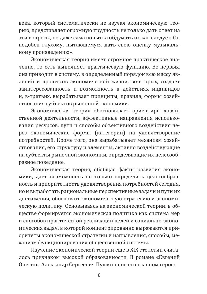 В учебнике логически излагается курс экономической теории. На основе достижений современной экономической науки рассматриваются исторические тенденции и их проявления в ходе развития экономической теории как науки. Представлены разделы микро-, макроэкономики и мирового хозяйства. Изложение теоретических проблем сопровождается анализом их состояния в современной России. В учебнике рассматриваются основные разделы современной экономической теории: теория спроса и предложения, основы теории потребления, основы теории производства, основы макроэкономики и международных экономических отношений (в сжатой и доступной форме, с использованием графиков, схем, таблиц). Анализируются экономические системы и модели государств в современном мире. Приведен терминологический перечень основных понятий, категорий и определений, даны тесты и задачи для самоконтроля.
