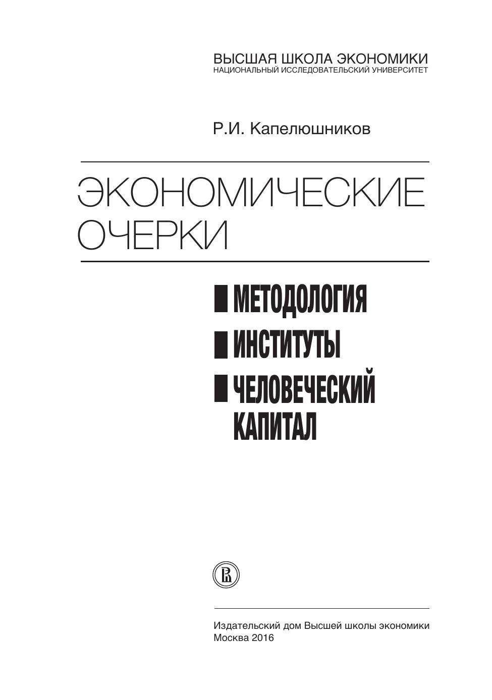 Экономические очерки: Методология, институты, человеческий капитал