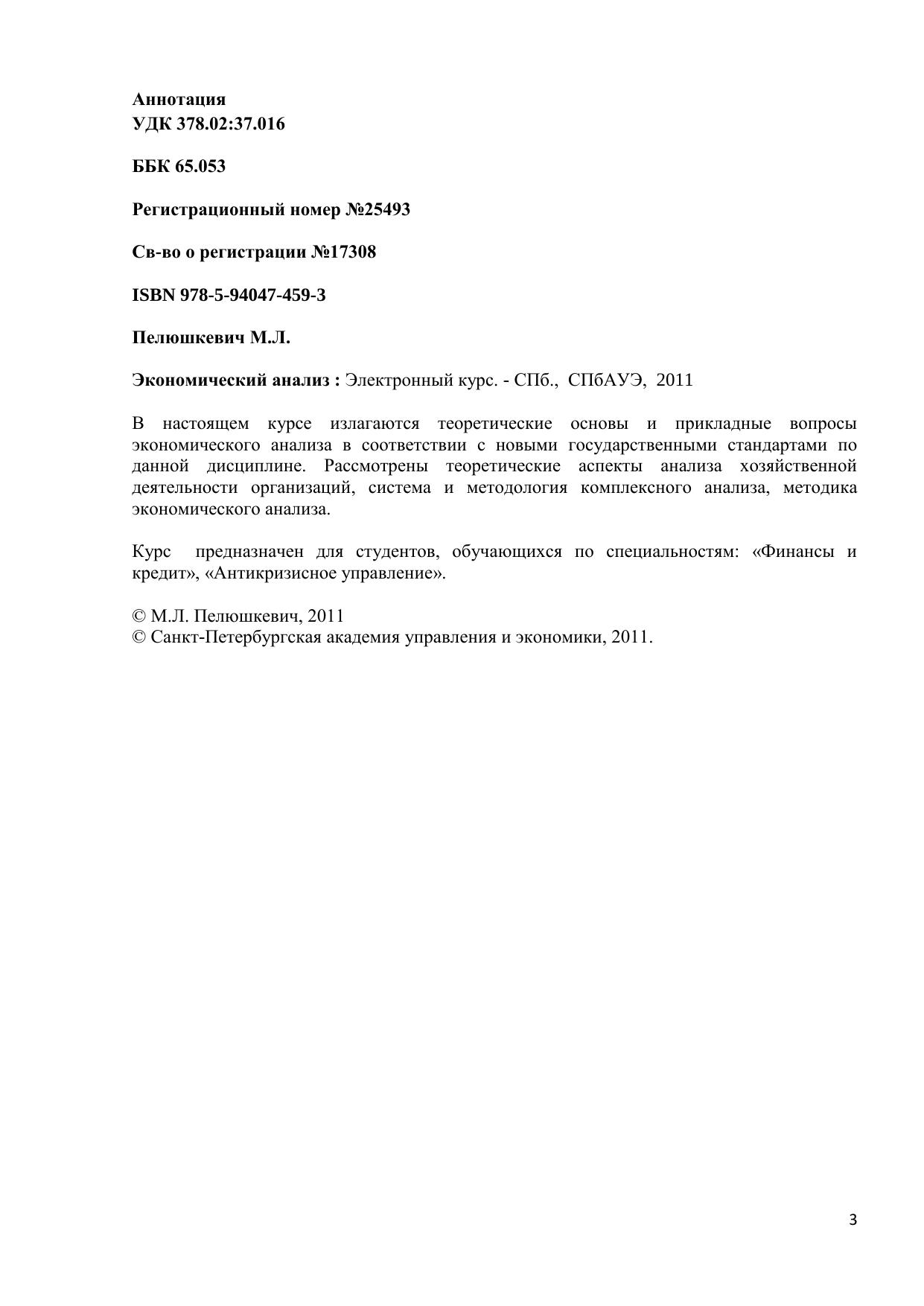 В настоящем курсе излагаются теоретические основы и прикладные вопросы экономического анализа в соответствии с новыми государственными стандартами по данной дисциплине. Рассмотрены теоретические аспекты анализа хозяйственной деятельности организаций, система и методология комплексного анализа, методика экономического анализа. Курс предназначен для студентов, обучающихся по специальностям: «Финансы и кредит», «Антикризисное управление».