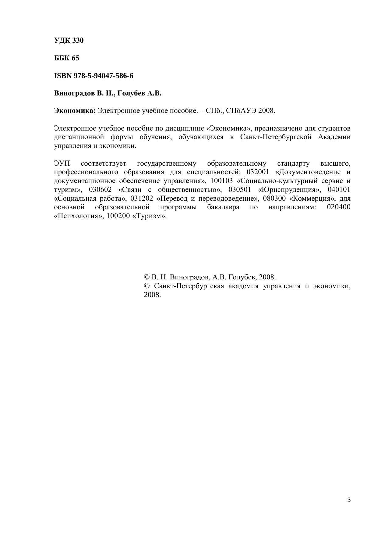 Электронное учебное пособие по дисциплине «Экономика», предназначено для студентов дистанционной формы обучения, обучающихся в Санкт-Петербургской Академии управления и экономики. ЭУП соответствует государственному образовательному стандарту высшего, профессионального образования для специальностей: 032001 «Документоведение и документационное обеспечение управления», 100103 «Социально-культурный сервис и туризм», 030602 «Связи с общественностью», 030501 «Юриспруденция», 040101 «Социальная работа», 031202 «Перевод и переводоведение», 080300 «Коммерция», для основной образовательной программы бакалавра по направлениям: 020400 «Психология», 100200 «Туризм». Электронное учебное пособие для дистанционного обучения