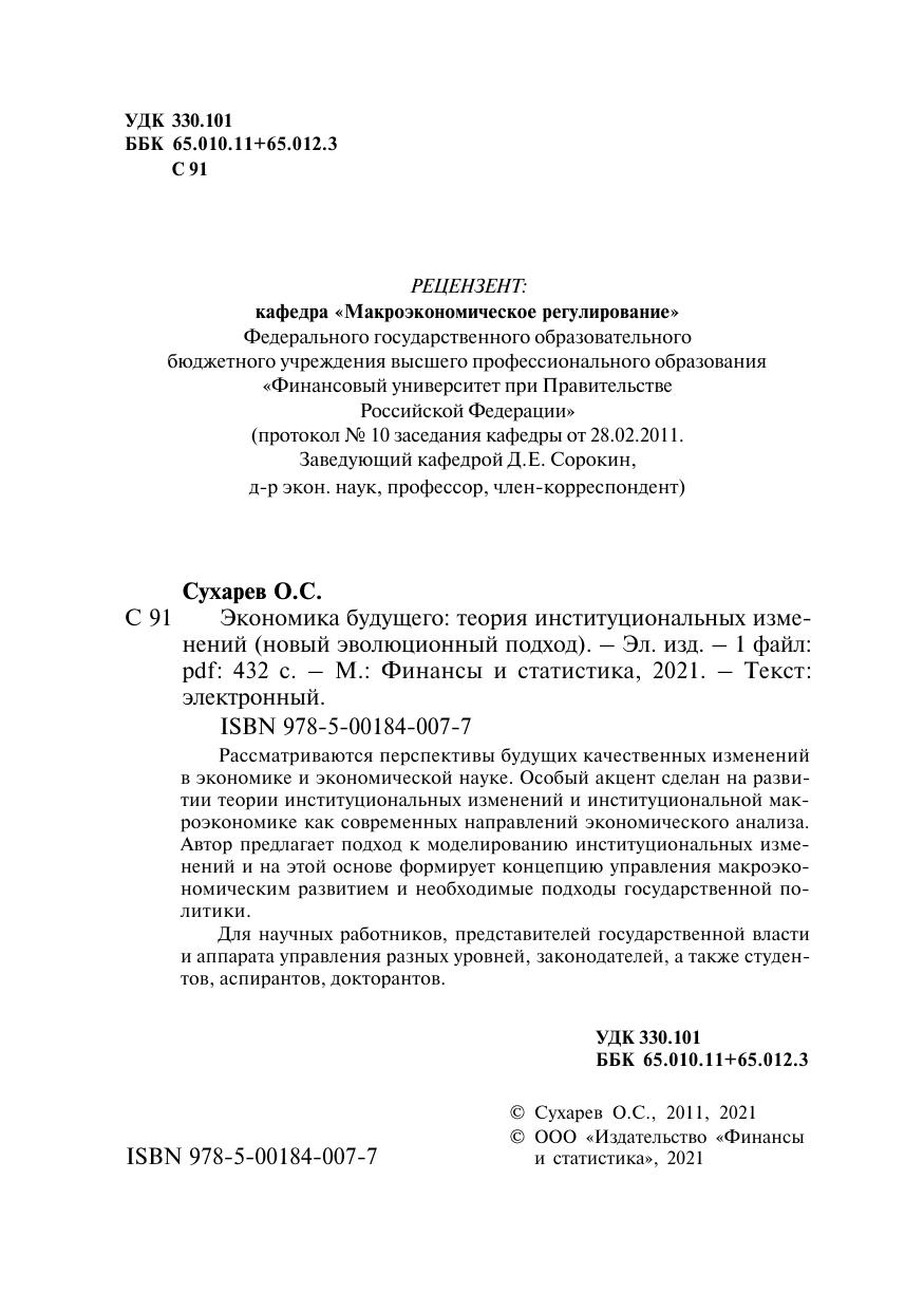 Экономика будущего: теория институциональных изменений (новый эволюционный подход)