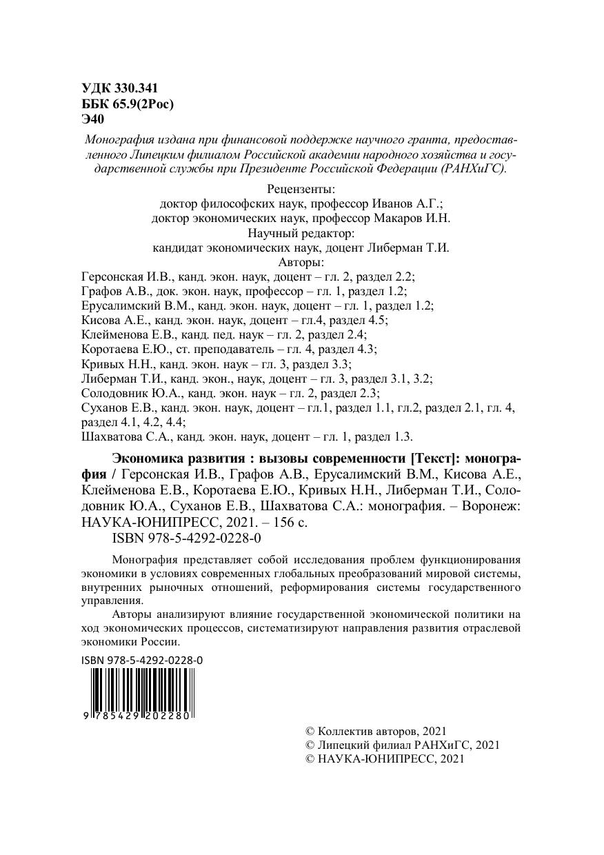 Монография представляет собой исследования проблем функционирования экономики в условиях современных глобальных преобразований мировой системы, внутренних рыночных отношений, реформирования системы государственного управления. Авторы анализируют влияние государственной экономической политики на ход экономических процессов, систематизируют направления развития отраслевой экономики России.