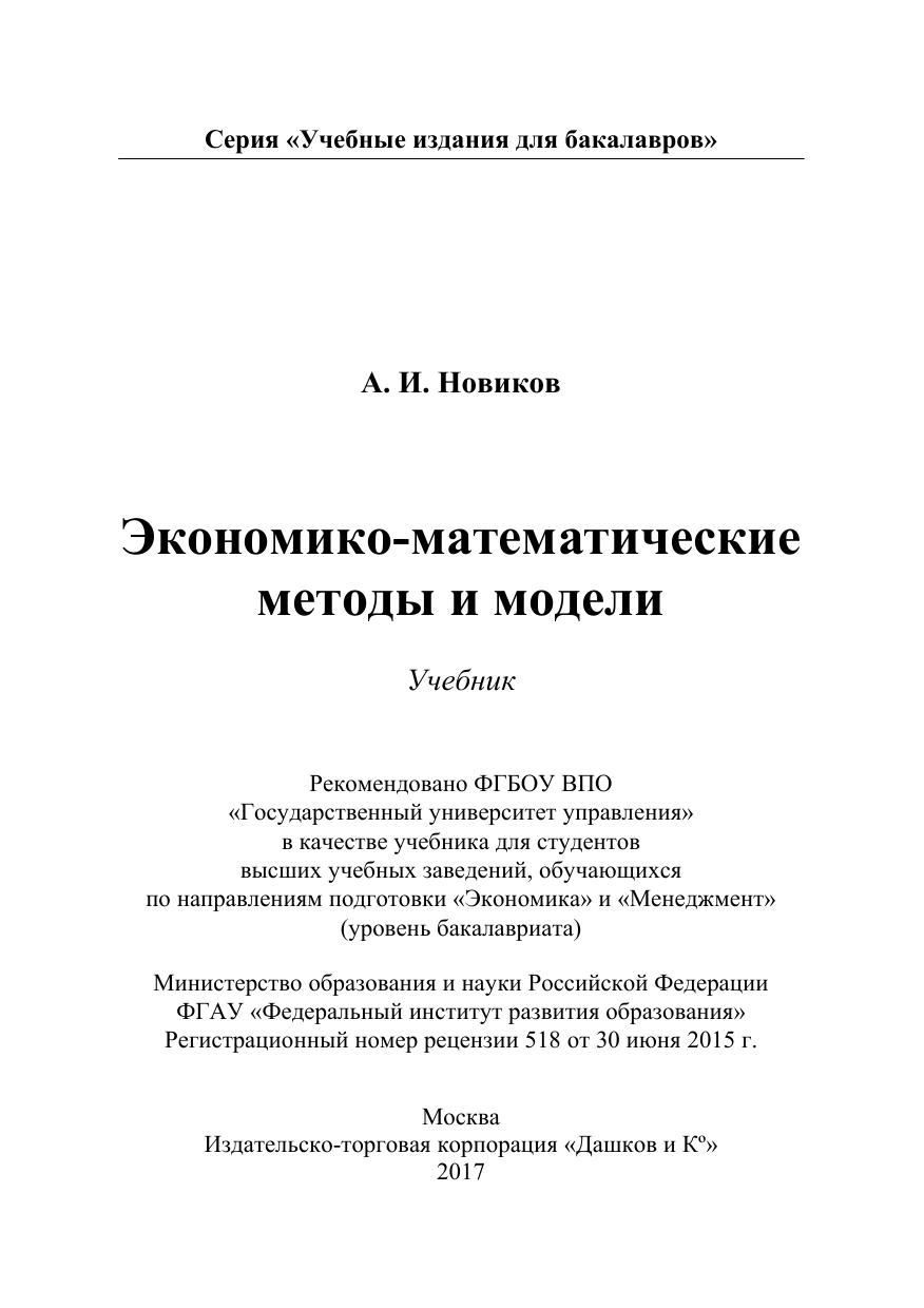 Учебник содержит основные разделы теории экономико-математических методов и моделей, подготовлен в соответствии с требованиями Федерального государственного образовательного стандарта. Во всех главах учебника приведено большое число примеров с подробным решением. Для студентов бакалавриата, обучающихся по направлениям подготовки «Экономика» и «Менеджмент», аспирантов, а также практических работников в области финансовой и экономической деятельности.