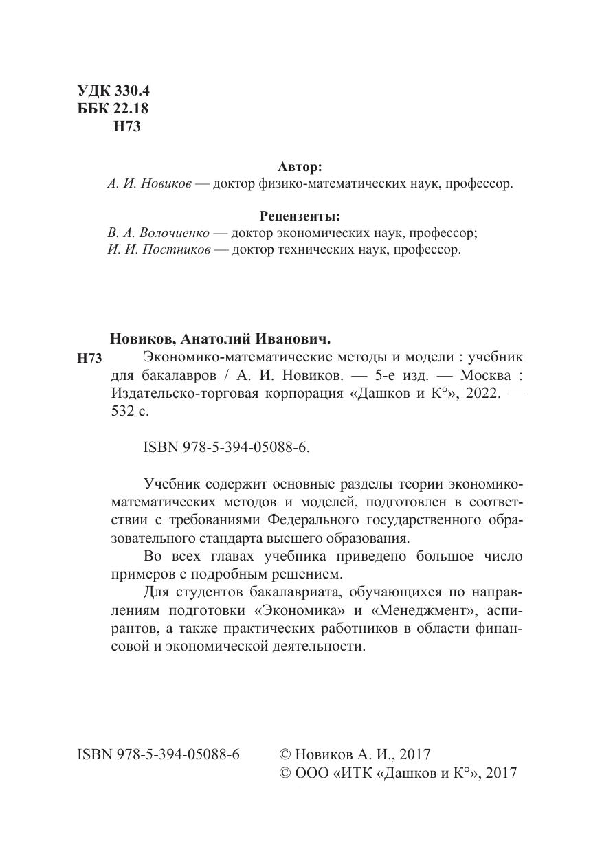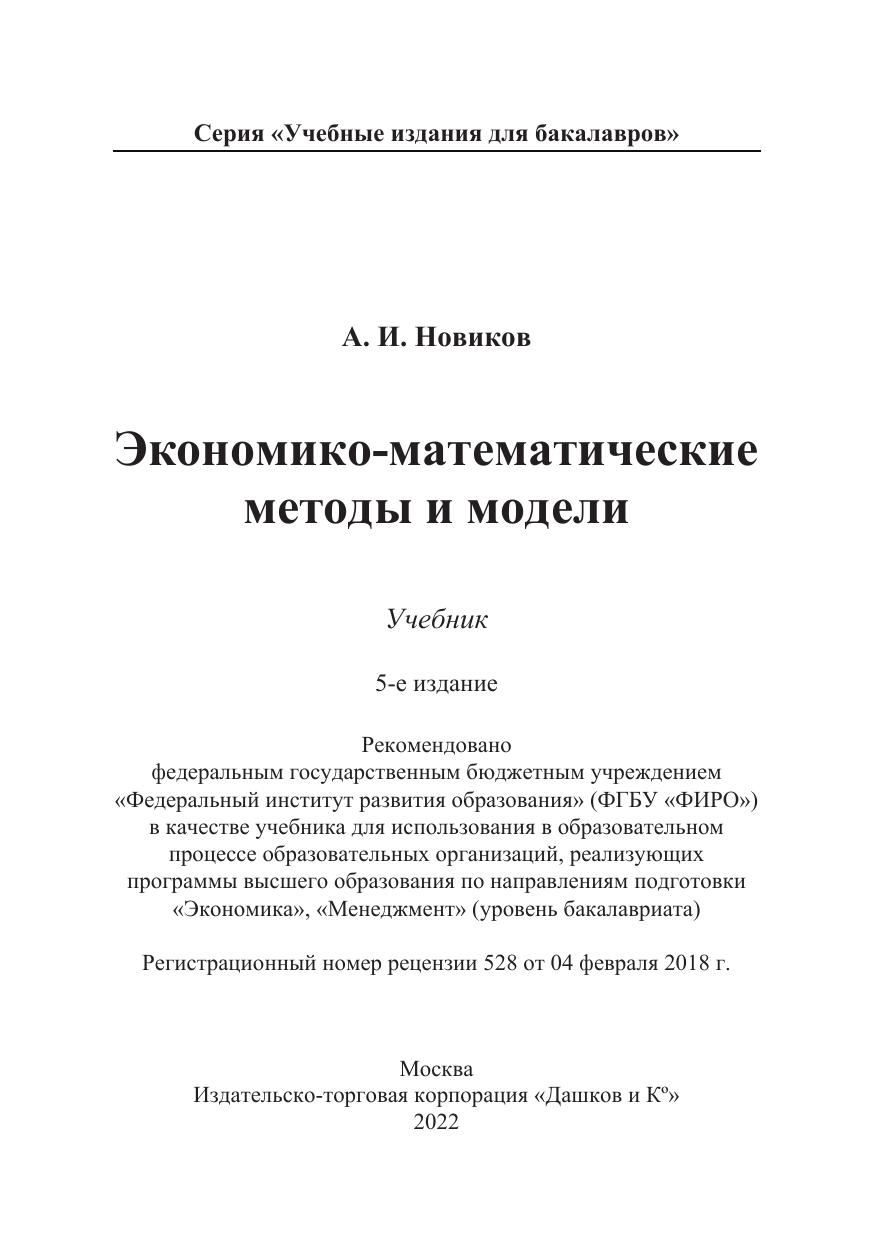 Учебник содержит основные разделы теории экономико- математических методов и моделей, подготовлен в соответствии с требованиями Федерального государственного образовательного стандарта. Во всех главах учебника приведено большое число примеров с подробным решением. Для студентов бакалавриата, обучающихся по направлениям подготовки «Экономика» и «Менеджмент», аспирантов, а также практических работников в области финансовой и экономической деятельности.