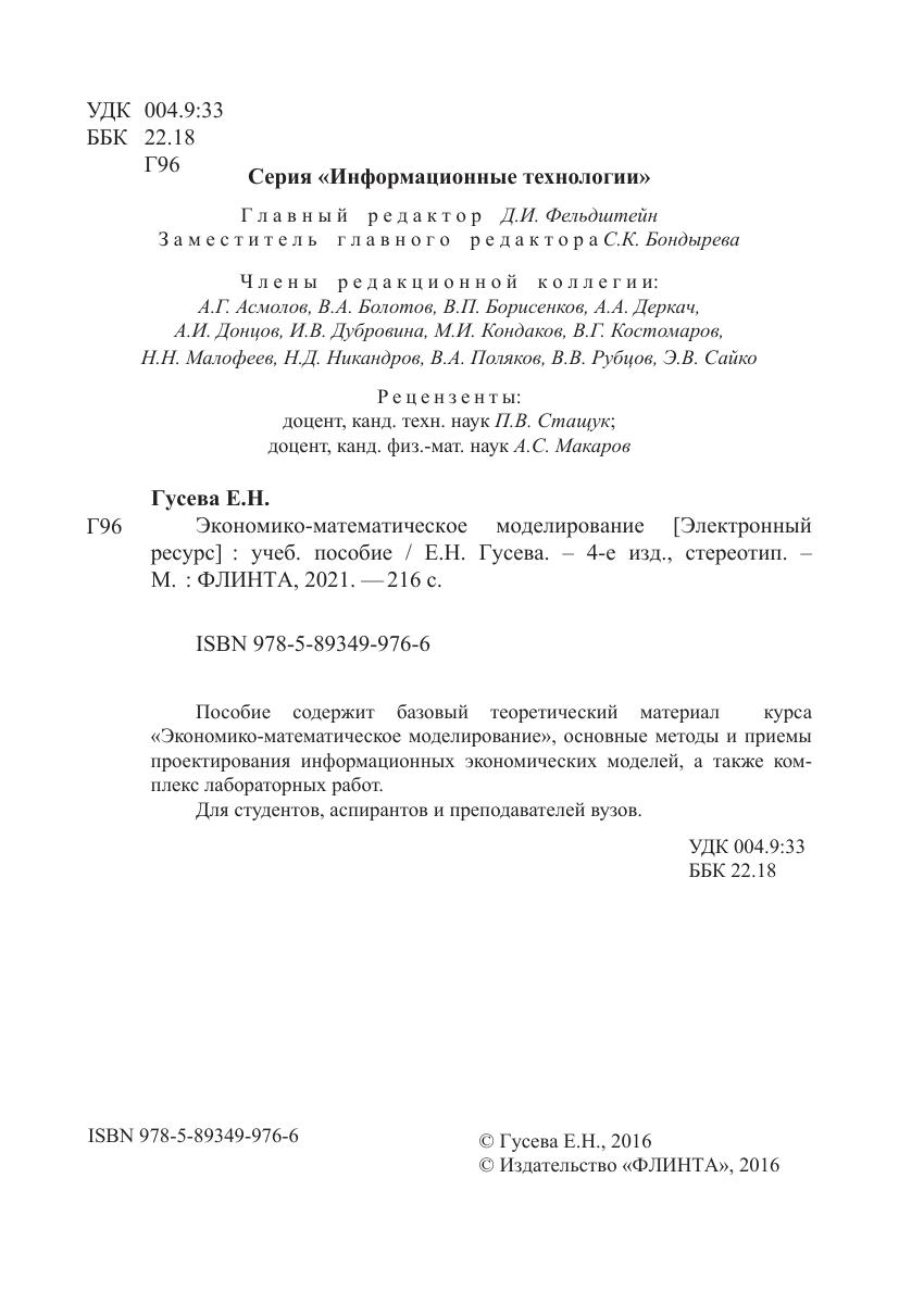 Пособие содержит базовый теоретический материал курса «Экономико-математическое моделирование», основные методы и приемы проектирования информационных экономических моделей, а также комплекс лабораторных работ. Для студентов, аспирантов и преподавателей вузов.