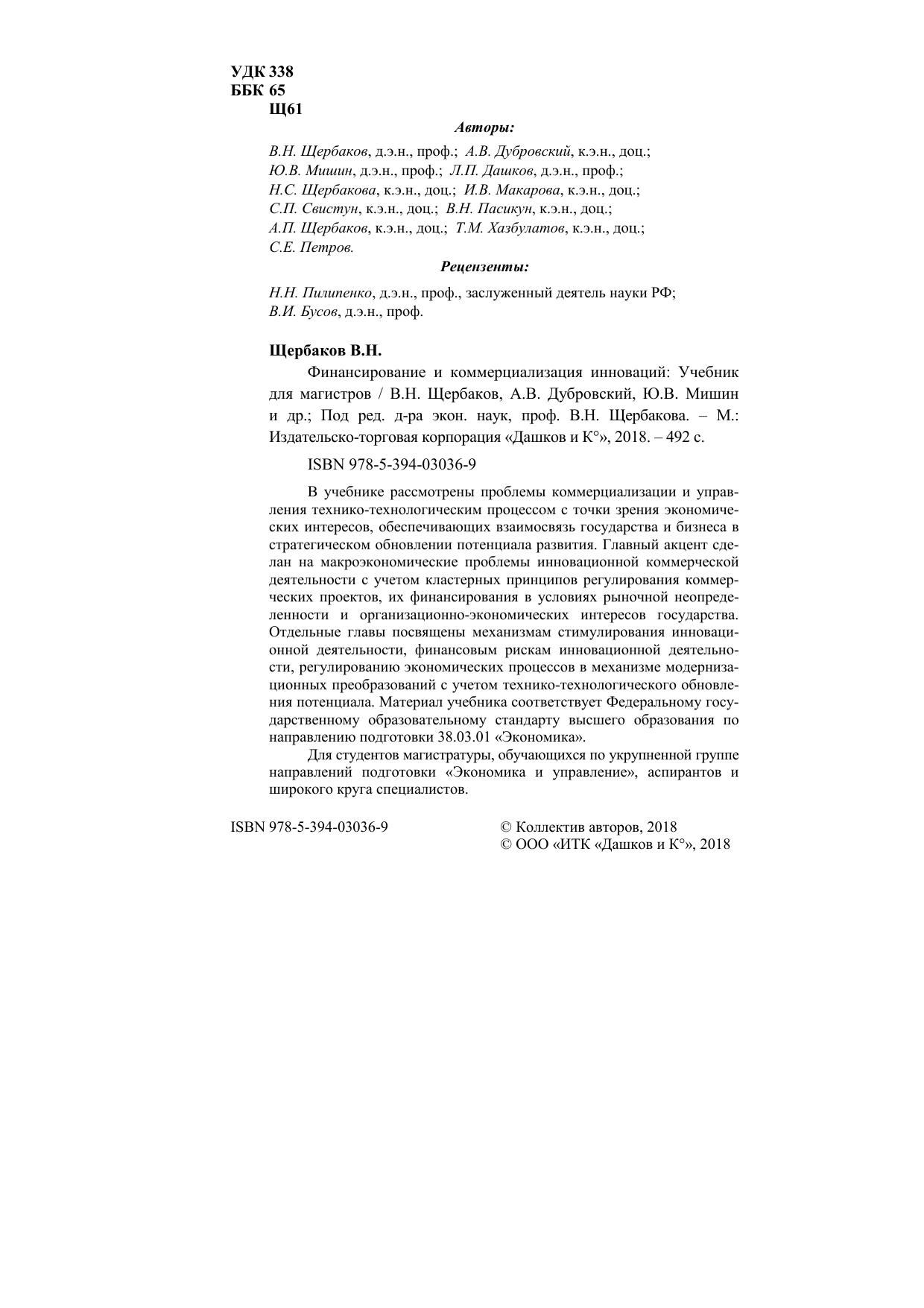 Авторы: Щербаков В.Н., Дубровский А.В., Мишин Ю.В., Дашков Л.П., Щербакова Н.С., МАКАРОВА И.В., Свистун С.П., Пасикун В.Н., Щербаков А.П., Хазбулатов Т.М., Петров С.Е.