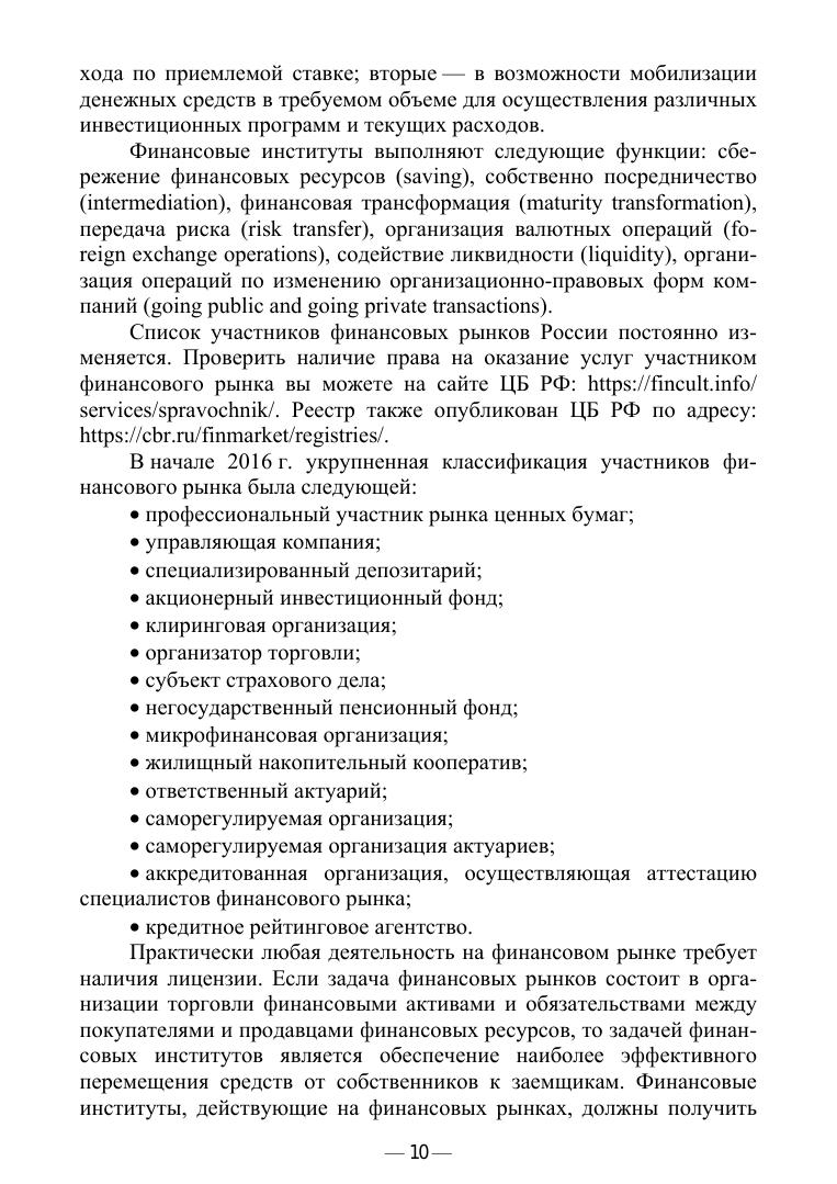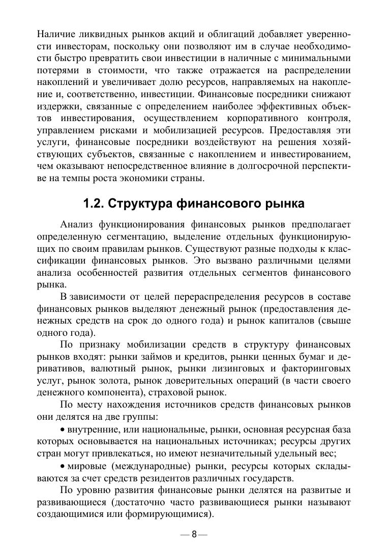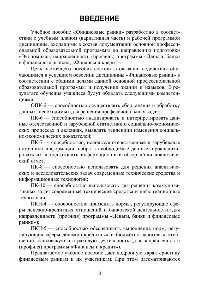 Учебное пособие «Финансовые рынки» разработано в соответствии с рабочей программой одноименной дисциплины. В нем дается подробная характеристика финансовых рынков и их участников. При этом рассматриваются особенности функционирования не только традиционных финансовых рынков, но и исламского финансового рынка. Понятие «финансовый рынок» в данном пособии включает все рынки в финансовой системе, посредством которых организации могут финансировать свою деятельность: кроме рынка ценных бумаг, это и валютный, и кредитный, и рынок страхования. Данное пособие предназначено для бакалавров, обучающихся по направлению подготовки «Экономика», направленность — «Деньги, банки и финансовые рынки» и «Финансы и кредит».