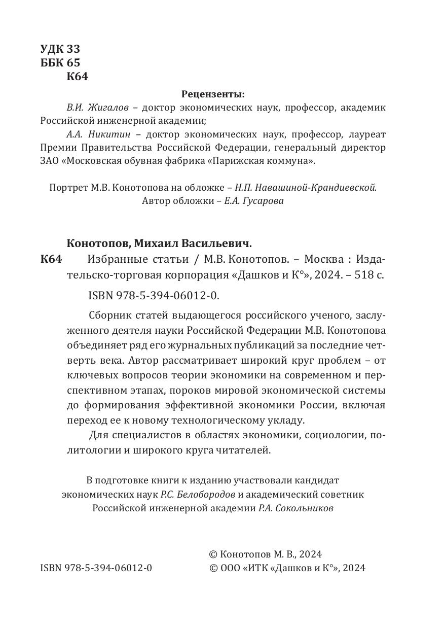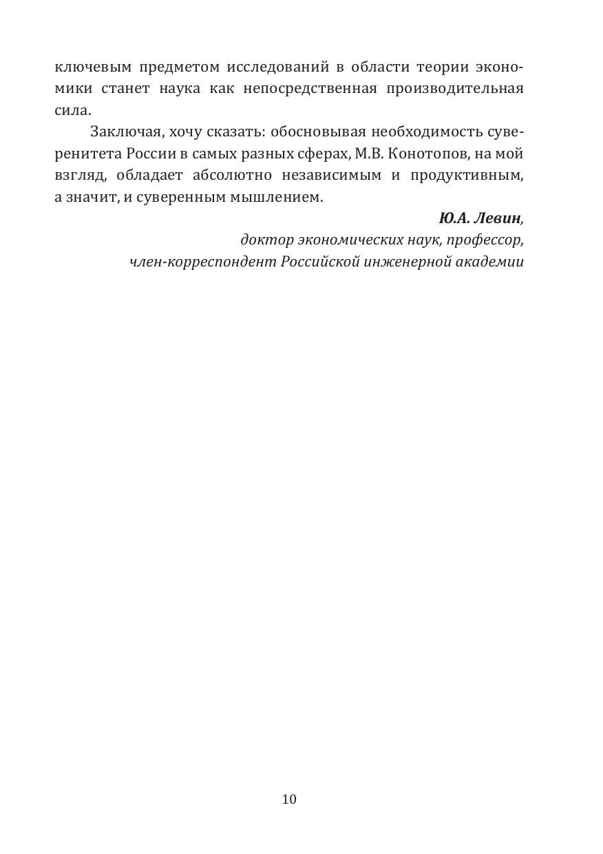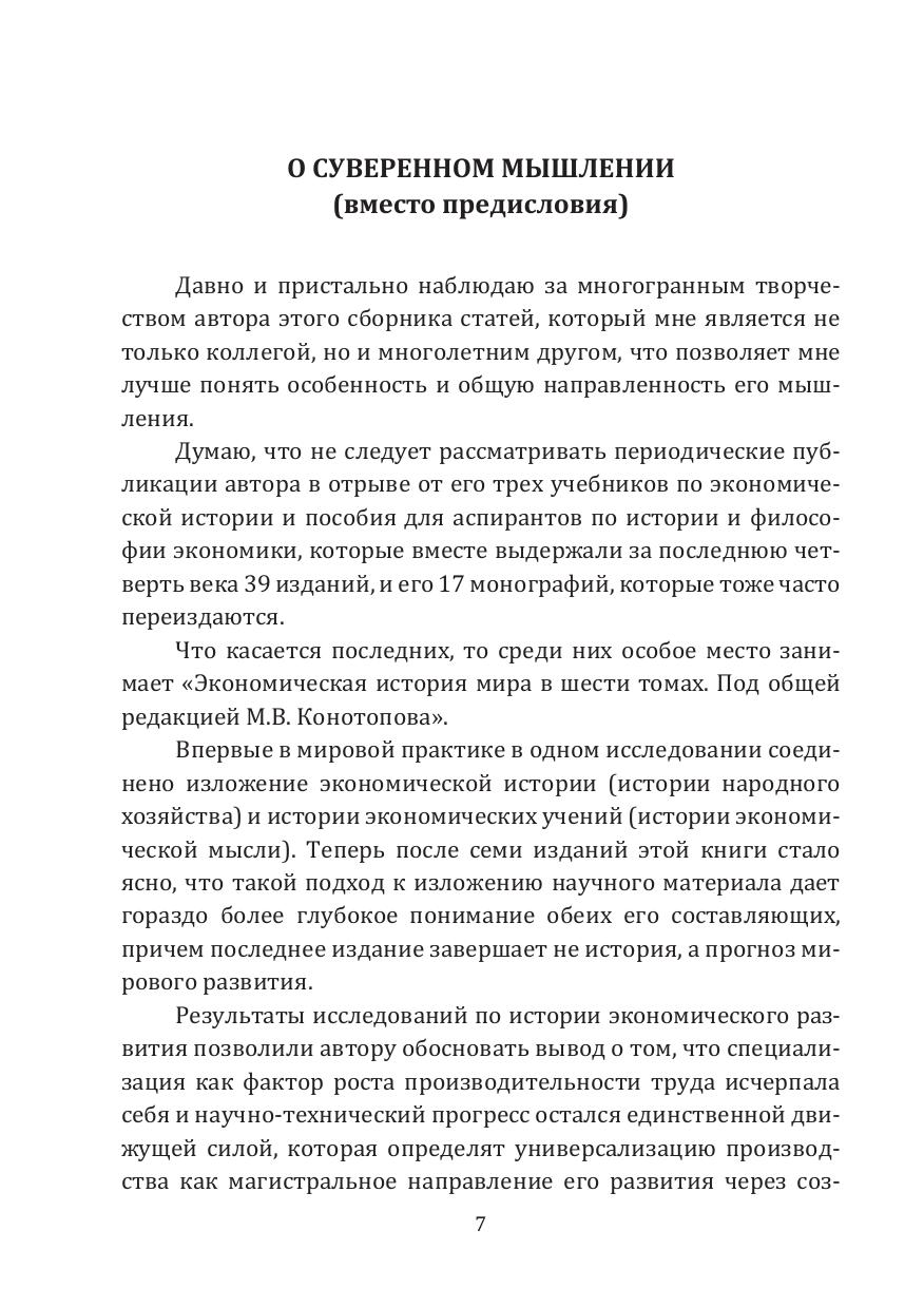 Сборник статей выдающегося российского ученого, заслуженного деятеля науки Российской Федерации Конотопова М.В. объединяет ряд его журнальных публикаций за последние четверть века. Автор рассматривает широкий круг проблем — от от ключевых вопросов теории экономики на современном и перспективном этапах, пороков мировой экономической системы до формирования эффективной экономики России включая переход ее к новому технологическому укладу.