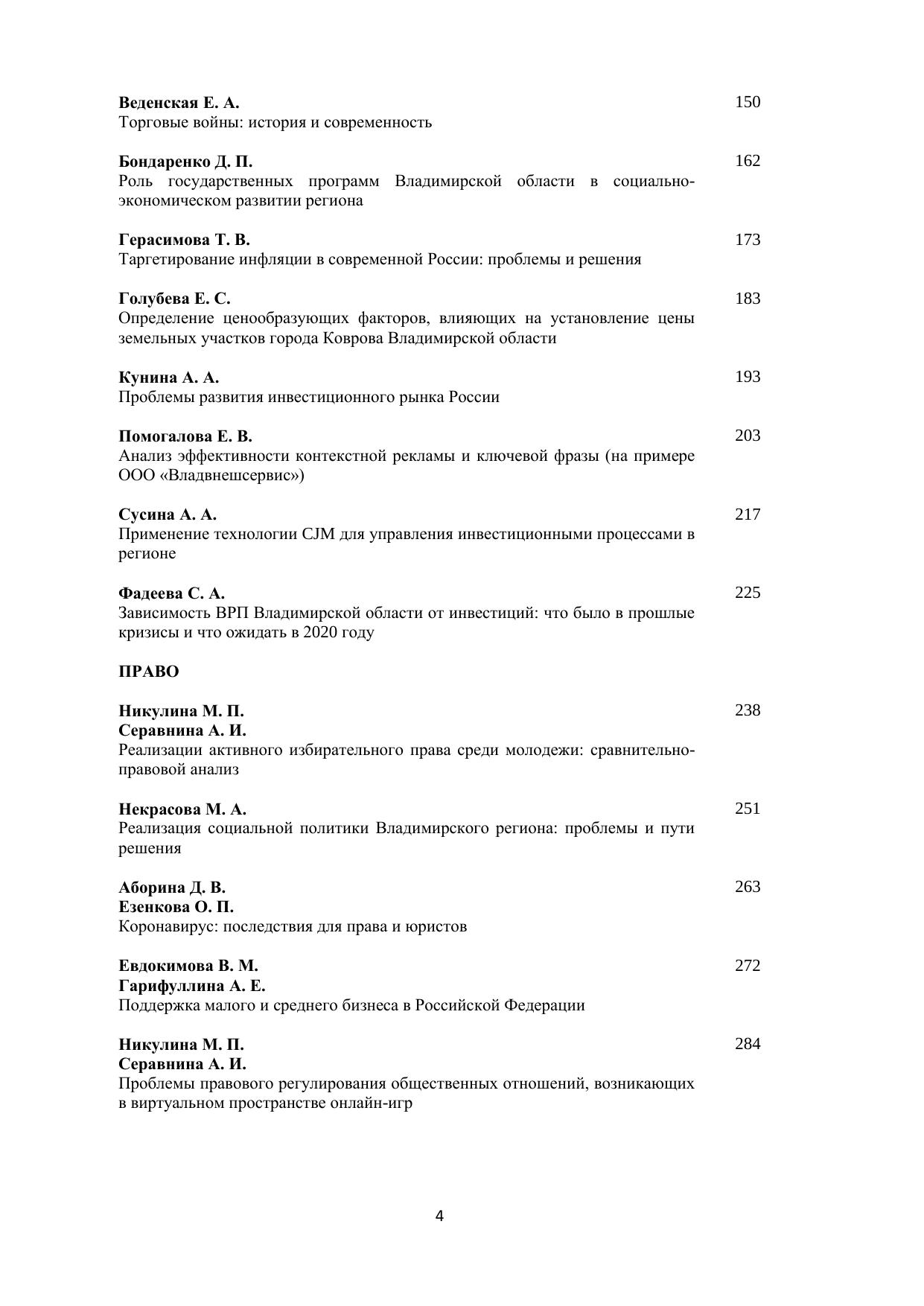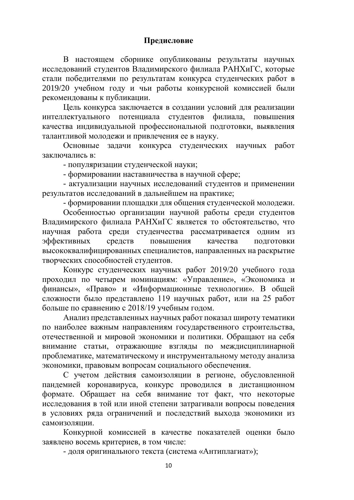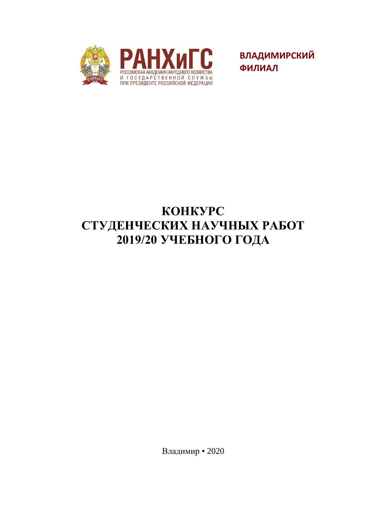 В сборнике представлены конкурсные научные работы, выполненные студентами Владимирского филиала РАНХиГС в 2019/20 учебном году. Печатается по решению ученого совета Владимирского филиала РАНХиГС.