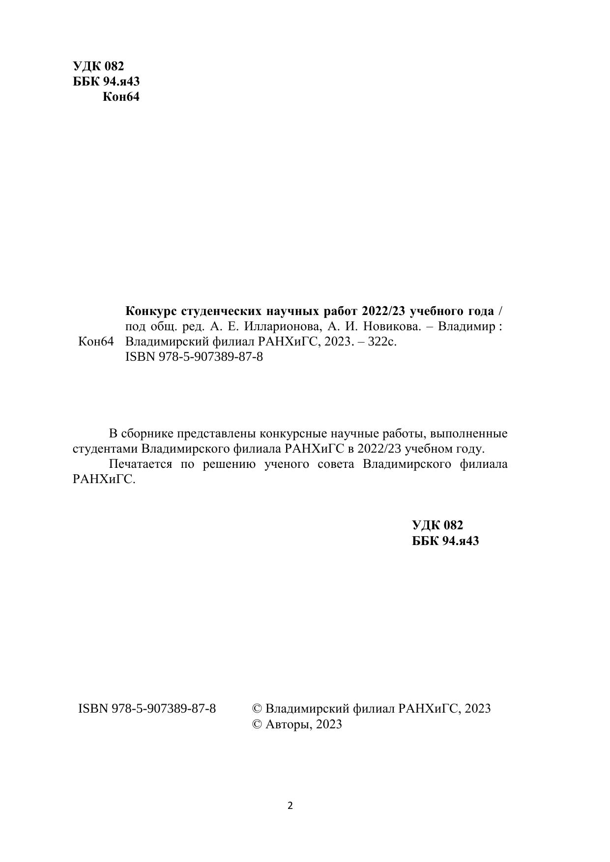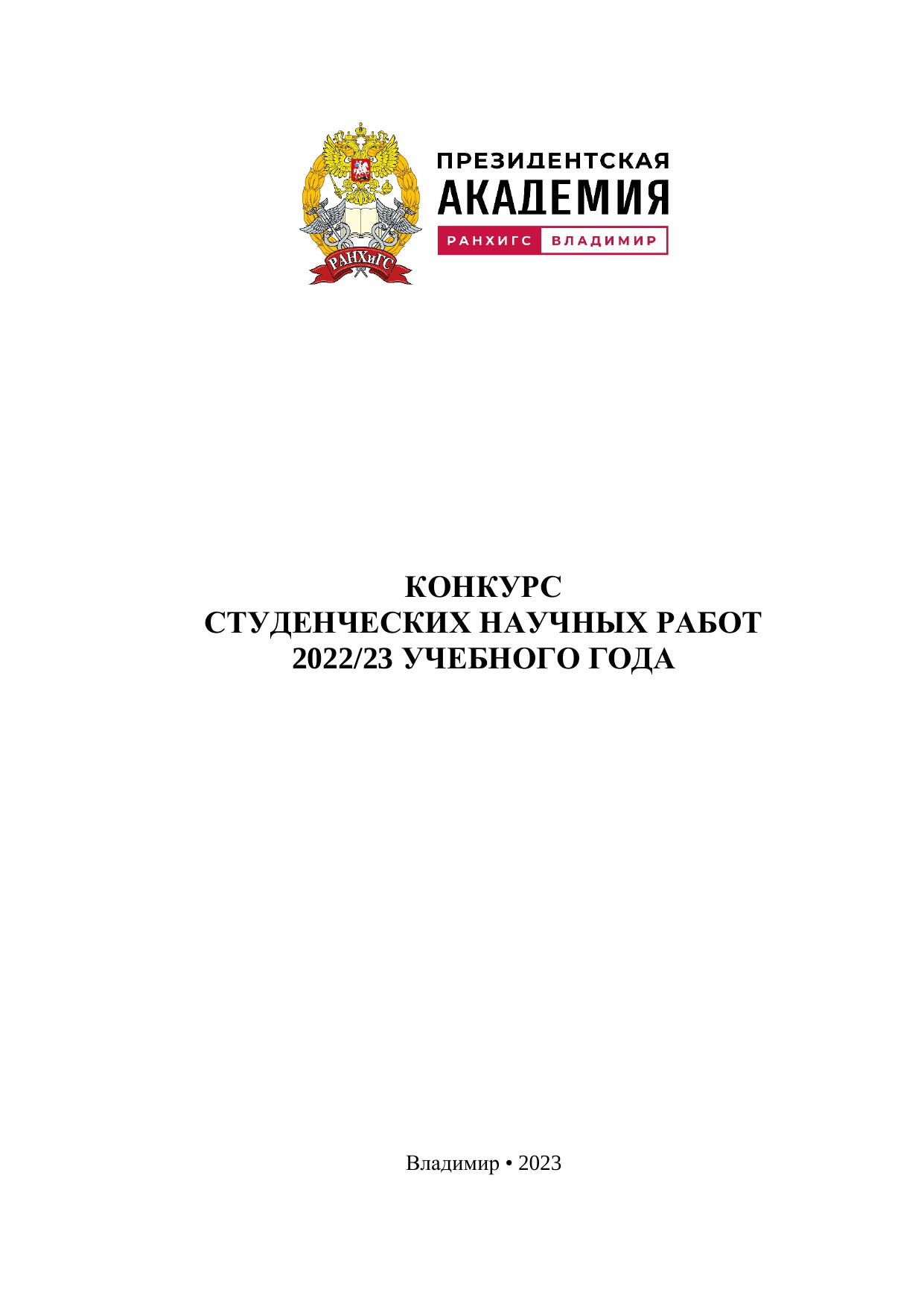 В сборнике представлены конкурсные научные работы, выполненные студентами Владимирского филиала РАНХиГС в 2022/23 учебном году. Печатается по решению ученого совета Владимирского филиала РАНХиГС.