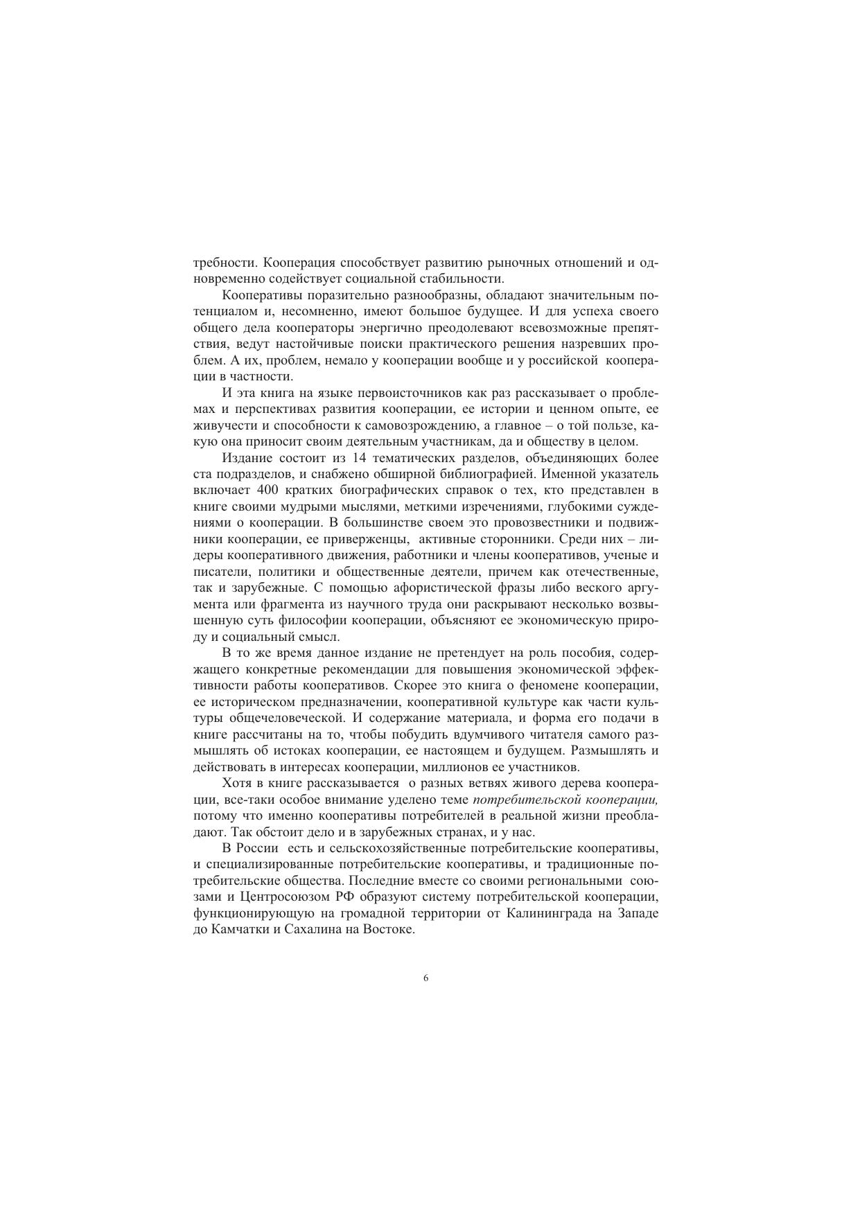 Книга охватывает широкий круг вопросов теории, богатой истории и практики всемирной кооперации, рассказывает о притягательной силе, социальной миссии и будущности кооперативов. Самое большое место в книге отведено кооперативному движению в России — дореволюционному, советского периода и современному. Издание знакомит с опытом кооператоров разных стран, подсказывает правильные решения проблем кооперативного развития. Для кооператоров — практиков и научных работников, преподавателей и студентов, а также для всех интересующихся вопросами кооперации.