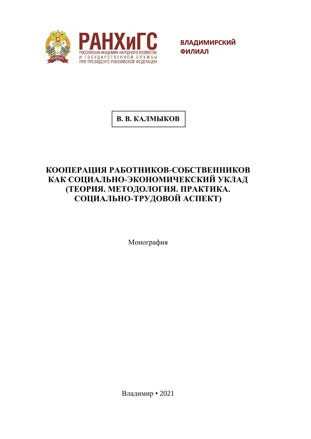 Кооперация работников-собственников как социально-экономический уклад (Теория. Методология. Практика. Социально-трудовой аспект)