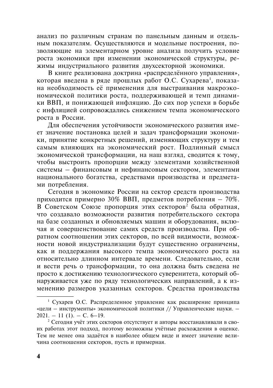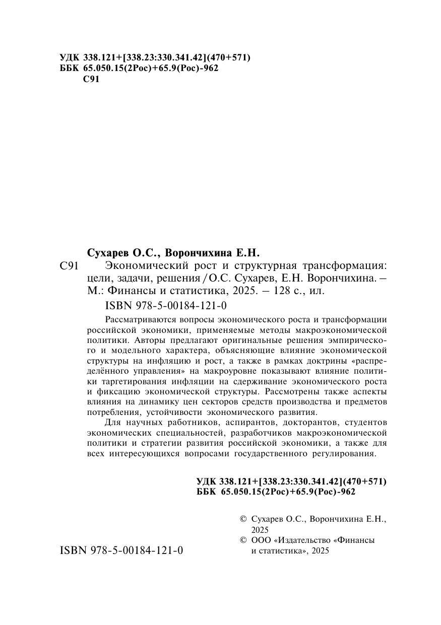 Рассматриваются вопросы экономического роста и трансформации российской экономики, применяемые методы макроэкономической политики. Авторы предлагают оригинальные решения эмпирического и модельного характера, объясняющие влияние экономической структуры на инфляцию и рост, а также в рамках доктрины «распределённого управления» на макроуровне показывают влияние политики таргетирования инфляции на сдерживание экономического роста и фиксацию экономической структуры. Рассмотрены также аспекты влияния на динамику цен секторов средств производства и предметов потребления, устойчивости экономического развития. Для научных работников, аспирантов, докторантов, студентов экономических специальностей, разработчиков макроэкономической политики и стратегии развития российской экономики, а также для всех интересующихся вопросами государственного регулирования.