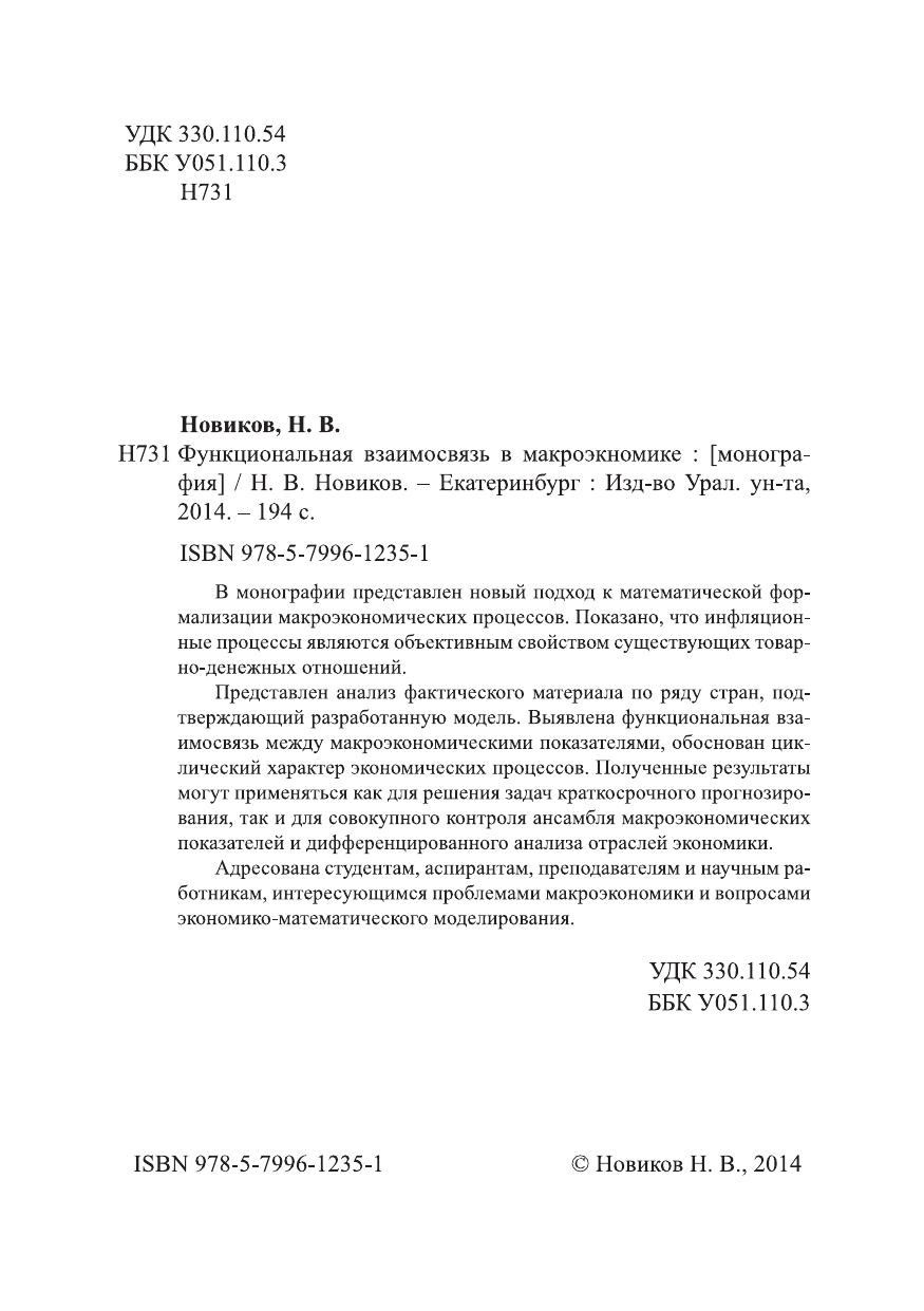 В монографии представлен новый подход к математической формализации макроэкономических процессов. Показано, что инфляционные процессы являются объективным свойством существующих товарно-денежных отношений. Представлен анализ фактического материала по ряду стран, подтверждающий разработанную модель. Выявлена функциональная взаимосвязь между макроэкономическими показателями, обоснован циклический характер экономических процессов. Полученные результаты могут применяться как для решения задач краткосрочного прогнозирования, так и для совокупного контроля ансамбля макроэкономических показателей и дифференцированного анализа отраслей экономики. Адресована студентам, аспирантам, преподавателям и научным работникам, интересующимся проблемами макроэкономики и вопросами экономико-математического моделирования.