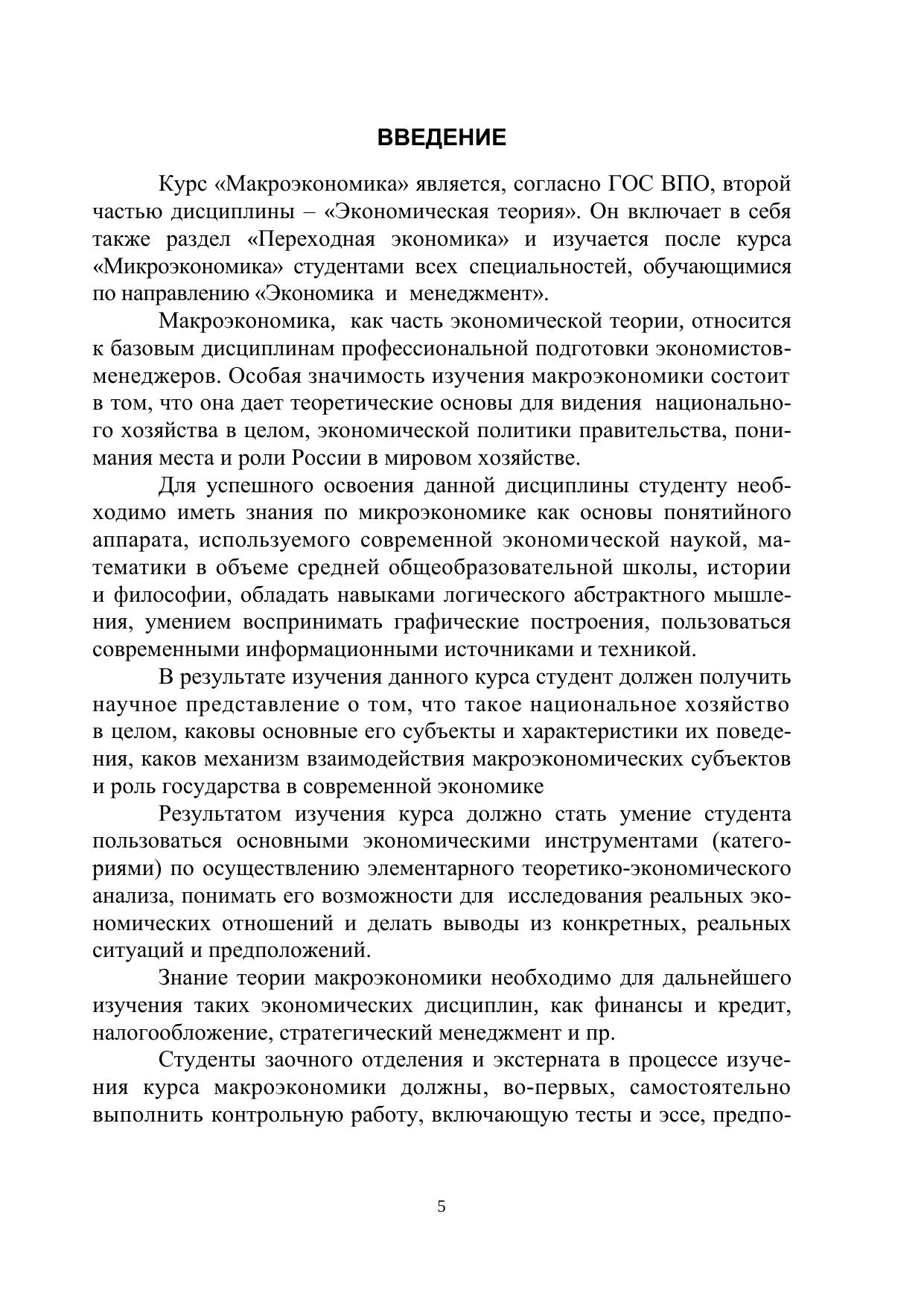 Представлена программа курса по макроэкономике, варианты контрольных работ, включающие в себя тесты разной формы и темы для эссе, а также требования к выполнению контрольной работы, список учебной литературы и internet-ресурс для поиска новой экономической информации.