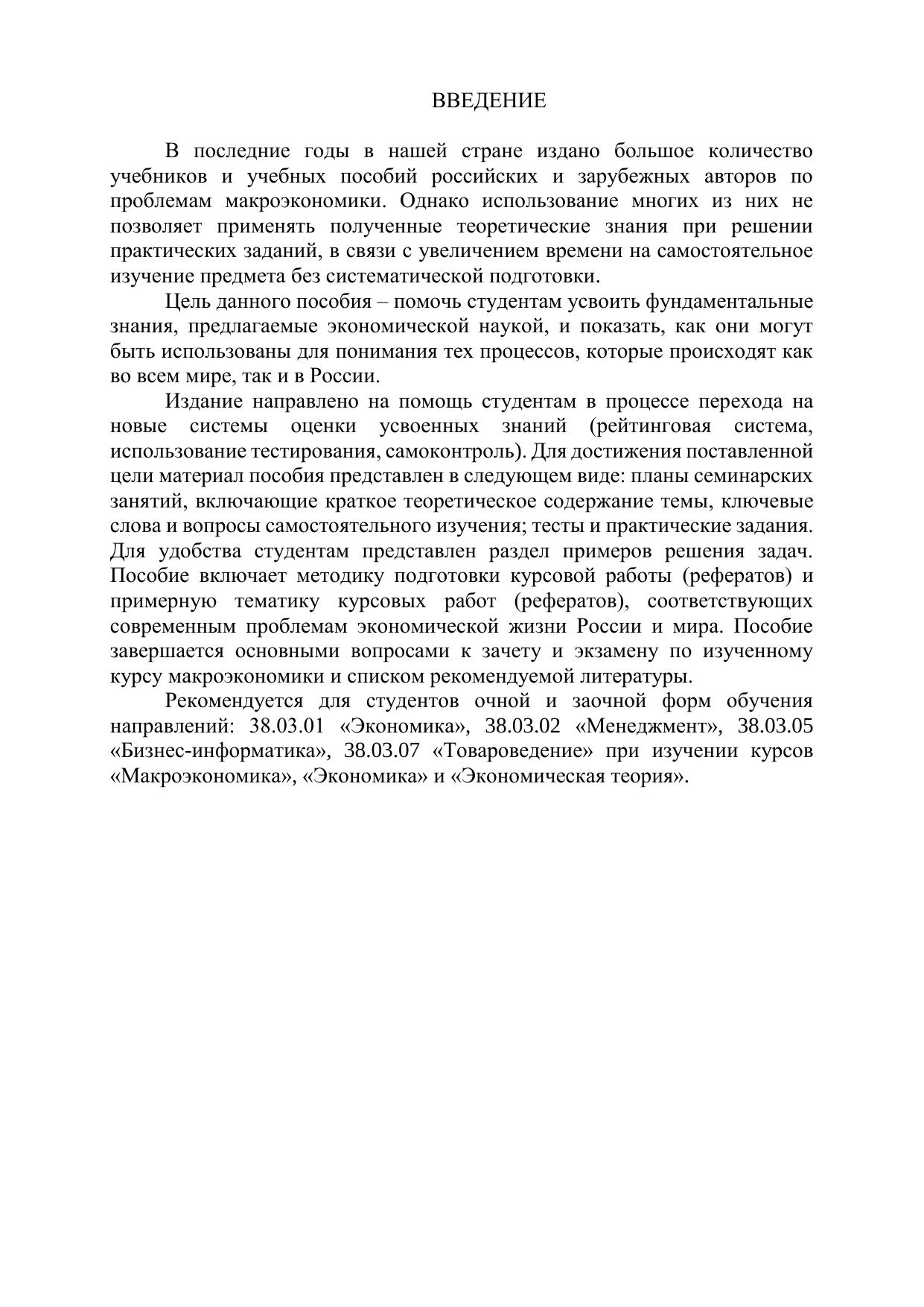 Издание способствует формированию системы знаний о явлениях и процессах экономической жизни общества на макроуровне, о методах и инструментах исследования этих явлений, о способах и средствах решения макроэкономических проблем. Включает планы семинарских занятий, задания и примеры их решения, тесты, тематику курсовых работ (рефератов) и рекомендации по их выполнению.