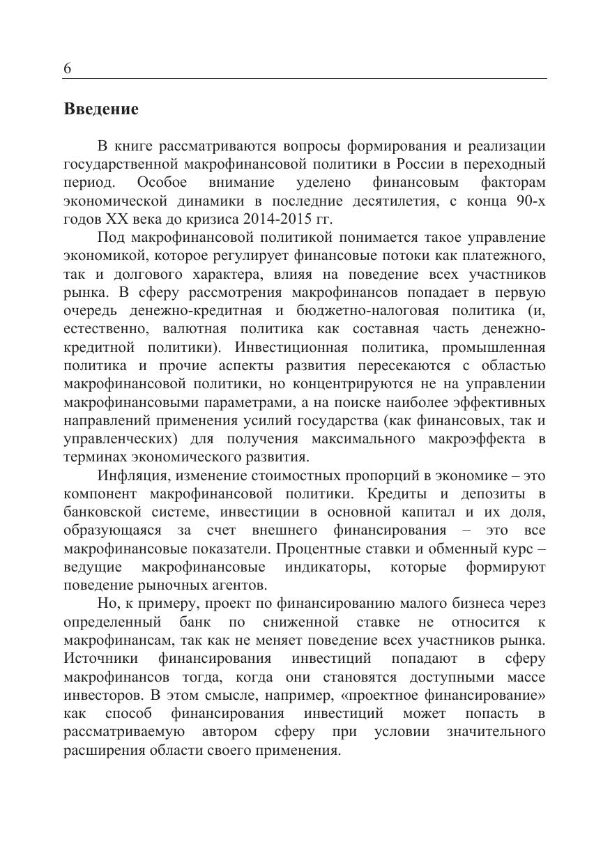 В монографии рассматриваются вопросы формирования и реализации государственной макрофинансовой политики в России с 90-х гг. XX века до наших дней. Особое внимание уделено финансовым факторам экономической динамики, включая денежно-кредитную, валютную и бюджетную политику. Инфляция, изменение стоимостных пропорций в экономике также составляют важную часть макрофинансовой политики.