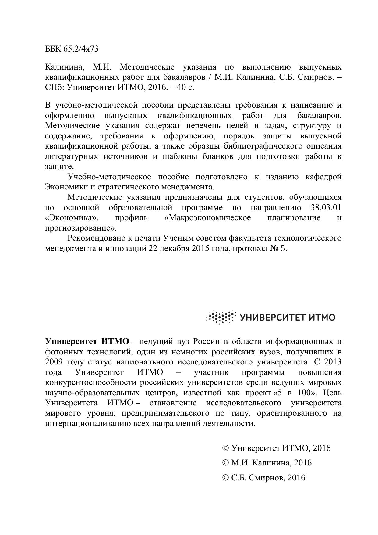 Методические указания по выполнению выпускных квалификационных работ для бакалавров