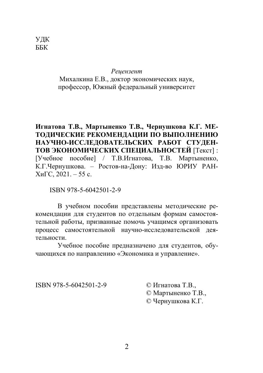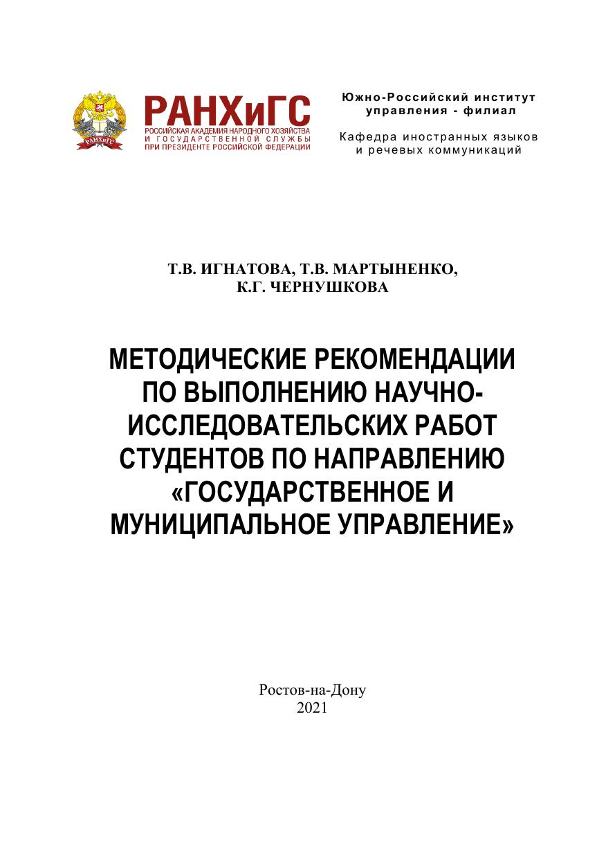 Методические рекомендации по выполнению научно-исследовательских работ студентов экономических специальностей