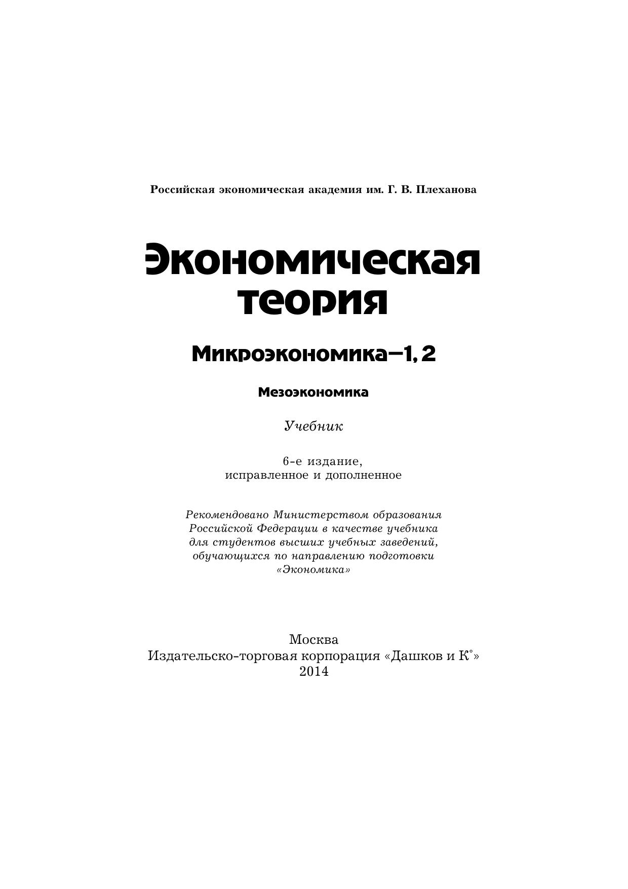 Гриф: Рекомендовано Министерством образования Российской Федерации в качестве учебника для студентов высших учебных заведений, обучающихся по направлению подготовки «Экономика»