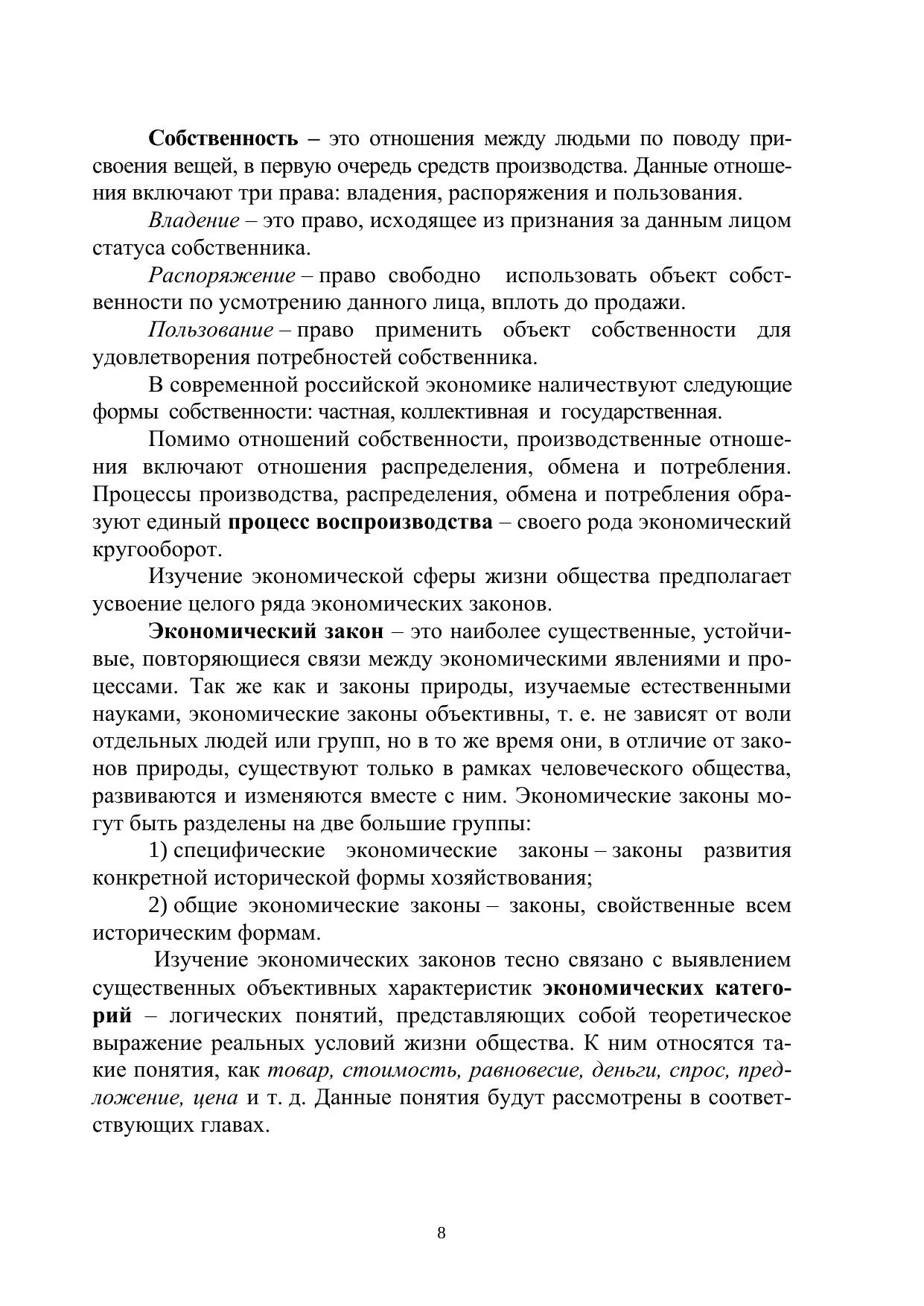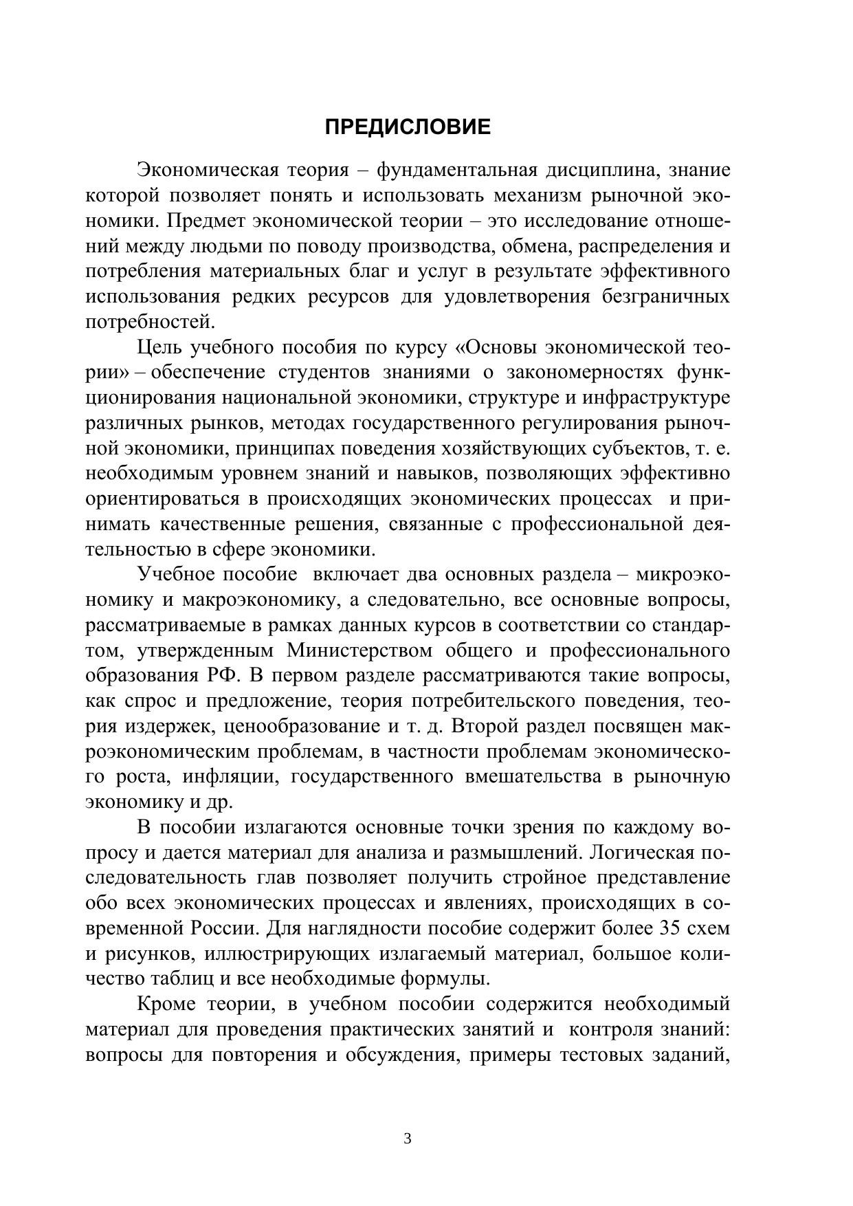 Рассмотрены основные понятия и постулаты экономической теории, экономические законы и функции, дискуссии по проблемам экономики. Представлены все основные экономические школы и концепции. Отражен опыт развития рыночных отношений в России. Учебное пособие отличает логическая стройность изложения, его структура и содержание соответствуют программе курса «Основы экономи-ческой теории». Приведены оригинальные разработки по данному курсу, список рекомендуемой литературы, словарь используемых терминов, примеры тестовых заданий. Предназначено для студентов, аспирантов и преподавателей.