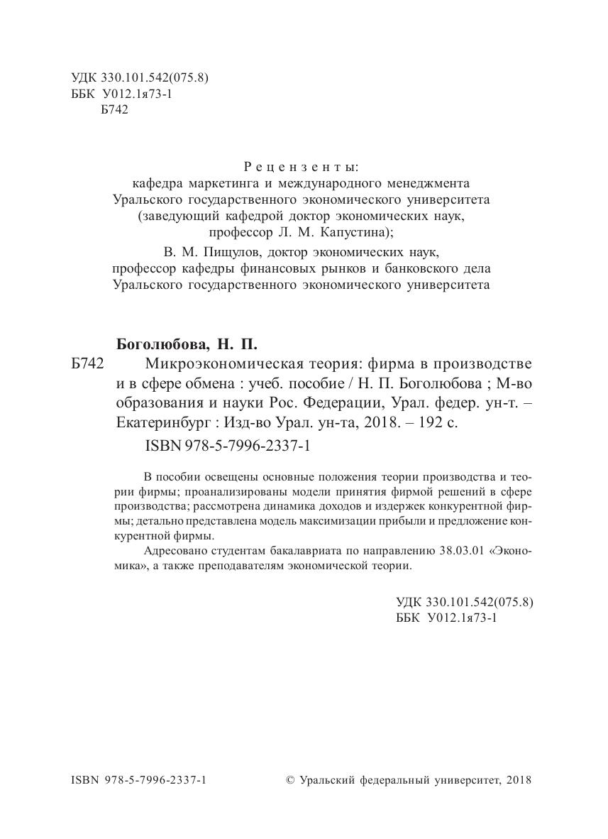 Микроэкономическая теория: фирма в производстве и в сфере обмена