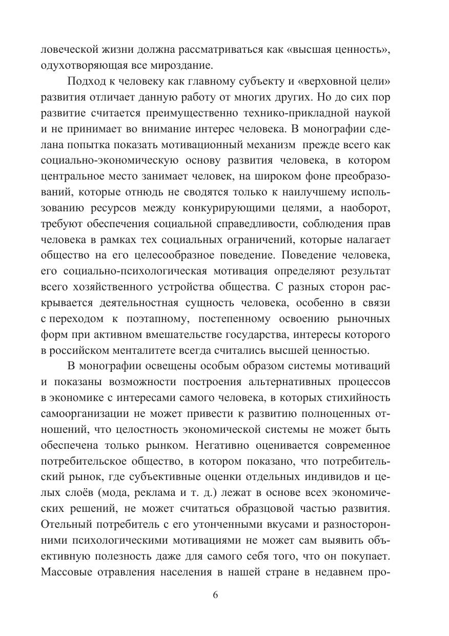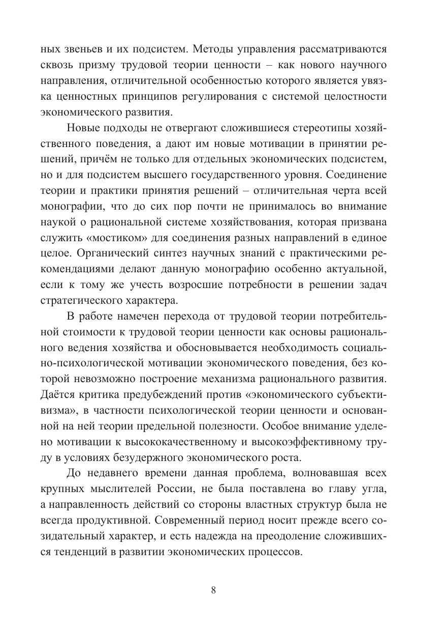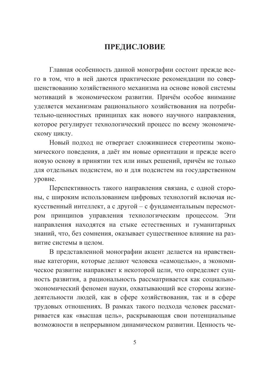 В монографии рассмотрены аспекты рационального хозяйствования, раскрываются целевые экономические интересы и показана глубинная основа мотиваций экономического поведения субъекта. Выявлена нравственная природа социально-экономических отношений и раскрыта мотивационная основа поведения в условиях ценностных переориентаций. Дана оценка стоимостным и потребительно-ценностным формам экономических отношений в русле устойчивого рыночного роста. В теоретическом плане тема монографии представлена прежде всего как социально-экономическая наука, охватывающая все стороны жизнедеятельности человека как главного субъекта экономического процесса. Сущность состоит в том, что новая система мотивационного поведения раскрывает базовые основы экономического роста с развитием.