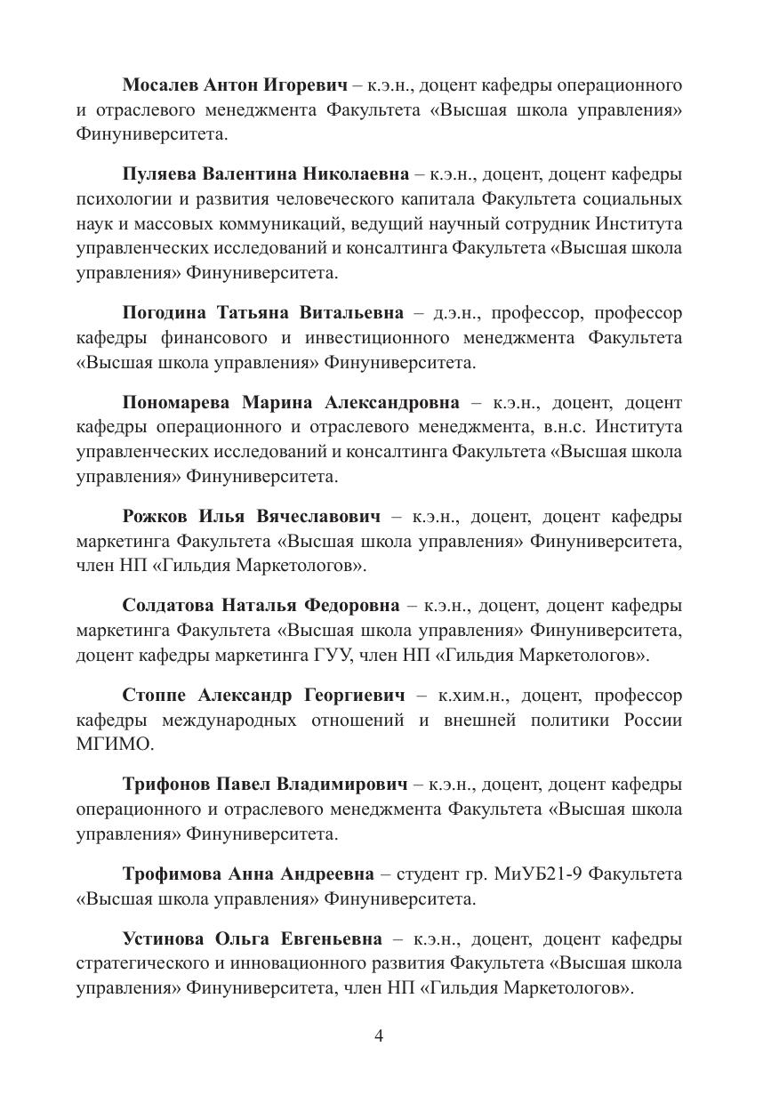 Монография раскрывает теоретико-методологические и практические направления развития фундаментальных управленческих процессов в условиях трансформации современной экономики. В работе представлено развитие новых направлений менеджмента, маркетинга, совершенствования воспитательных практик в развитии молодежи, поведения потребителей, оценки качества жизни, вопросов ответственного потребления, оценки уровня конкуренции на приоритетных рынках с учетом устойчивого развития, цифровой, территориальной и отраслевой трансформации. Особое место в монографии занимает изучение поведения потребителей, инструментов имиджа и деловой репутации, инновационных направлений развития маркетинговых инструментов.