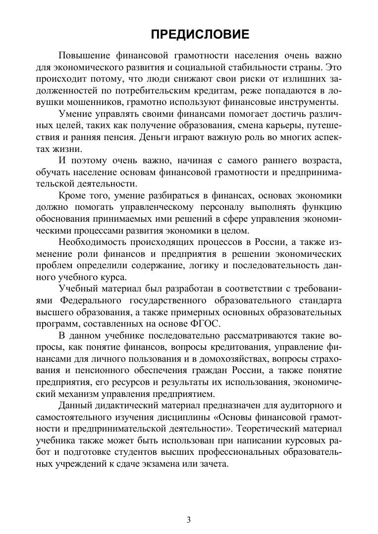 Рассмотрены понятия финансов, вопросы кредитования, управление финансами для личного пользования и в домохозяйствах, вопросы страхования и пенсионного обеспечения граждан России, а также понятие предприятия, его ресурсов и результаты их использования, экономический механизм управления предприятием. Учебник предназначен для аудиторного и самостоятельного изучения одноименной дисциплины студентами вузов всех направлений подготовки, а также может быть использован при написании курсовых работ.