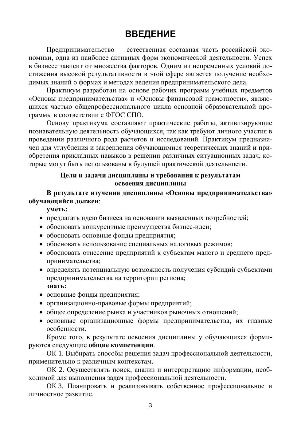 Практикум по новым учебным дисциплинам «Основы предпринимательства» и «Основы финансовой грамотности» содержит необходимый минимум теоретической информации и обширный материал для выполнения практической работы. Также в нем содержатся контрольные средства для оценки текущей успеваемости и итоговой проверки конечного образовательного результата. Все задания направлены на активизацию учебно-познавательной деятельности и формирование коммуникативных и регулятивных способностей обучающихся. Соответствует современным требованиям Федерального государственного образовательного стандарта среднего профессионального образования и профессиональным квалификационным требованиям. Пособие предназначено студентам профессиональных образовательных организаций всех направлений подготовки. Также может использоваться для проведения практикумов, самостоятельных работ и факультативных занятий. Окажется очень полезным для педагогических работников, осуществляющих учебный процесс по данным дисциплинам.