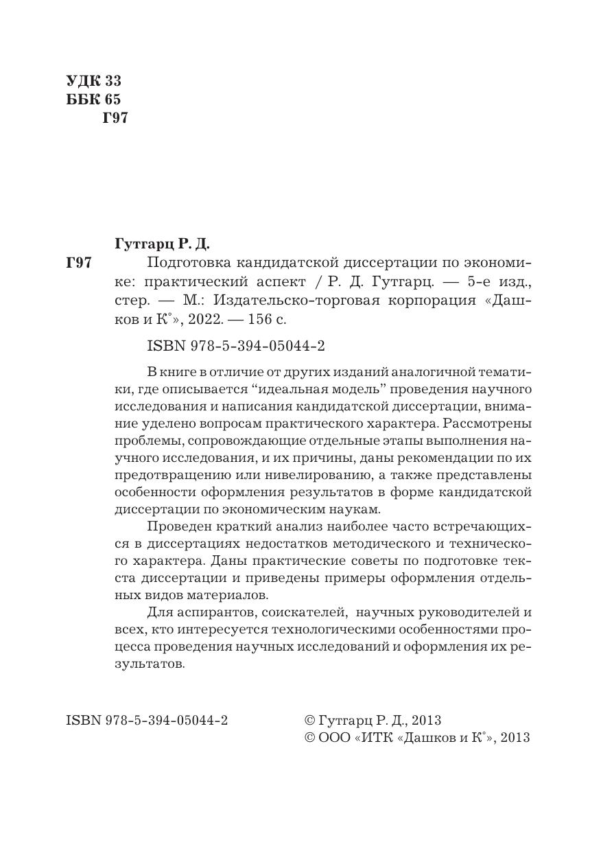В книге в отличии от других изданий аналогичной тематике, где описывается "идеальная модель" проведения научного исследования и написания кандидатской диссертации, внимание уделено вопросам практического характера. Рассмотрены проблемы, сопровождающие отдельные этапы выполнения научного исследования, и их причины, даны рекомендации по их предотвращению или невилированию, а также представлены особенности оформления результатов в форме кандидатской диссертации по экономическим наукам. Проведен краткий анализ наиболее часто встречающихся в диссертациях недостатков методического и технического характера. Даны практические советы по подготовке текста диссертации и приведены примеры оформления отдельных видов материалов. Для аспирантов, соискателей, научных руководителей и всех, кто интересуется технологическими особенностями процесса проведения научных исследований и оформления их результатов.