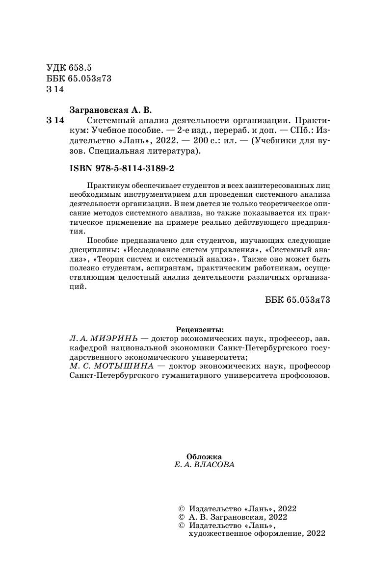 Практикум обеспечивает студентов и всех заинтересованных лиц необходимым инструментарием для проведения системного анализа деятельности организации. В нем дается не только теоретическое описание методов системного анализа, но также показывается их практическое применение на примере реально действующего предприятия. Пособие предназначено для студентов, изучающих следующие дисциплины: «Исследование систем управления», «Системный анализ», «Теория систем и системный анализ». Также оно может быть полезно студентам, аспирантам, практическим работникам, осуществляющим целостный анализ деятельности различных организаций.