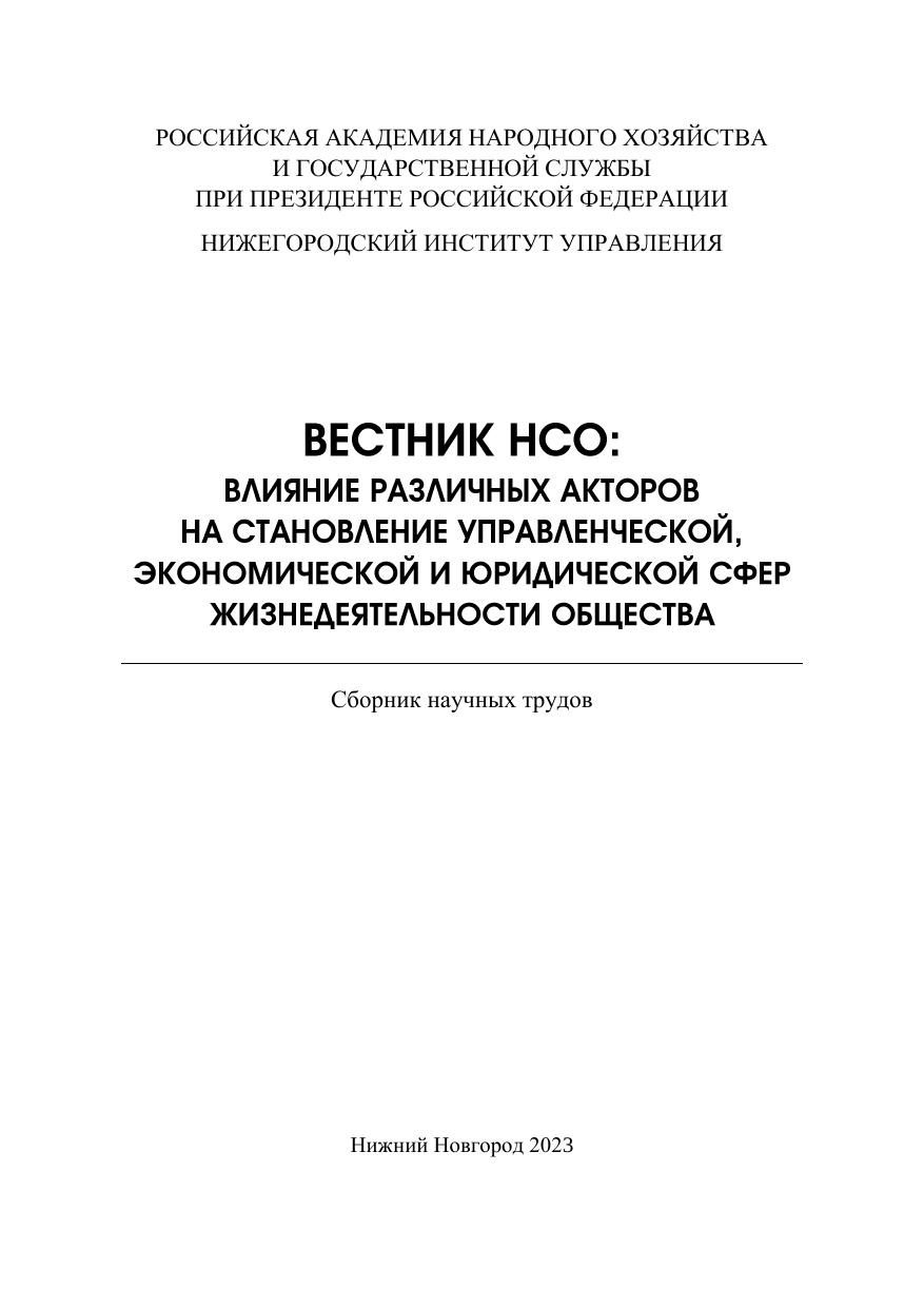 Вестник НСО: влияние различных акторов на становление управленческой, экономической и юридической сфер жизнедеятельности общества: сборник научных трудов