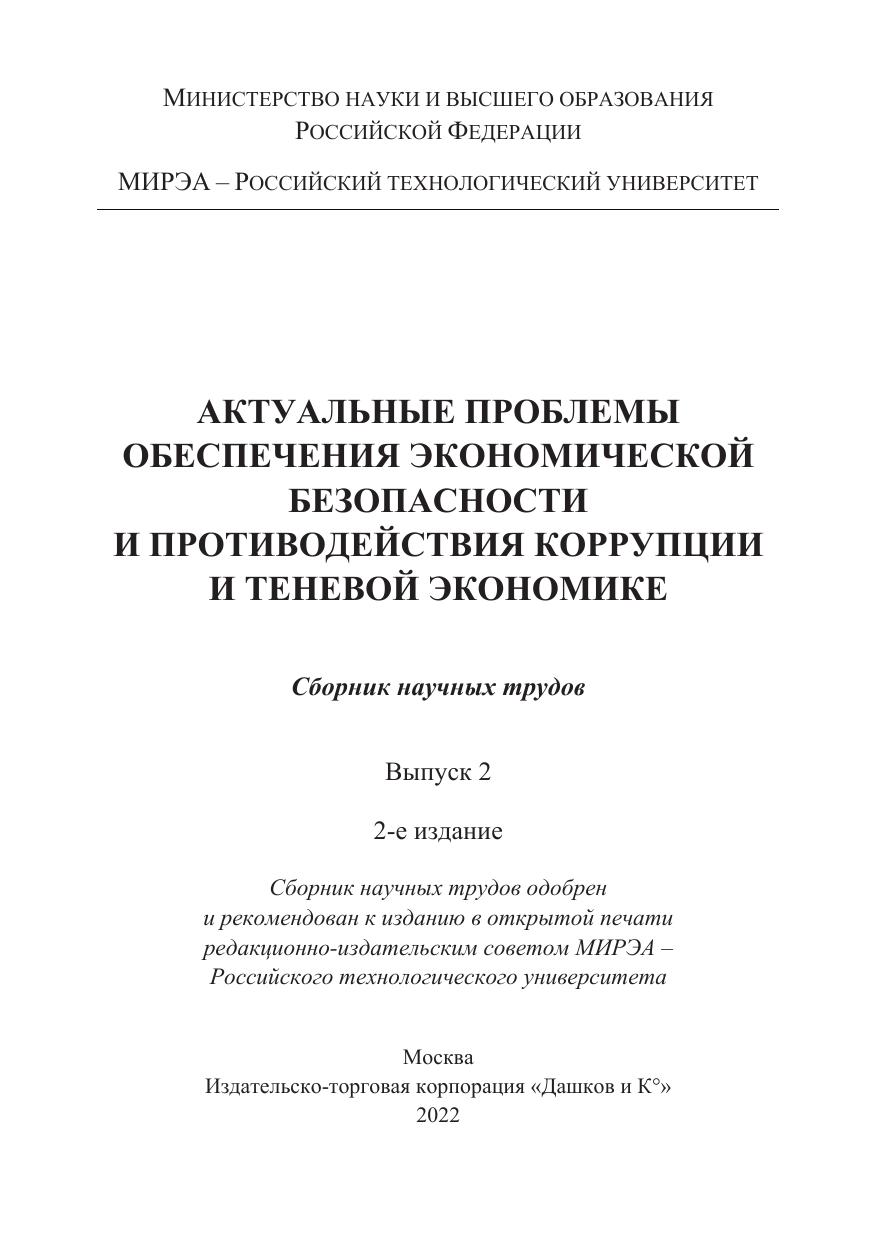 Актуальные проблемы обеспечения экономической безопасности и противодействия коррупции и теневой экономике: Сборник научных трудов, вып.2