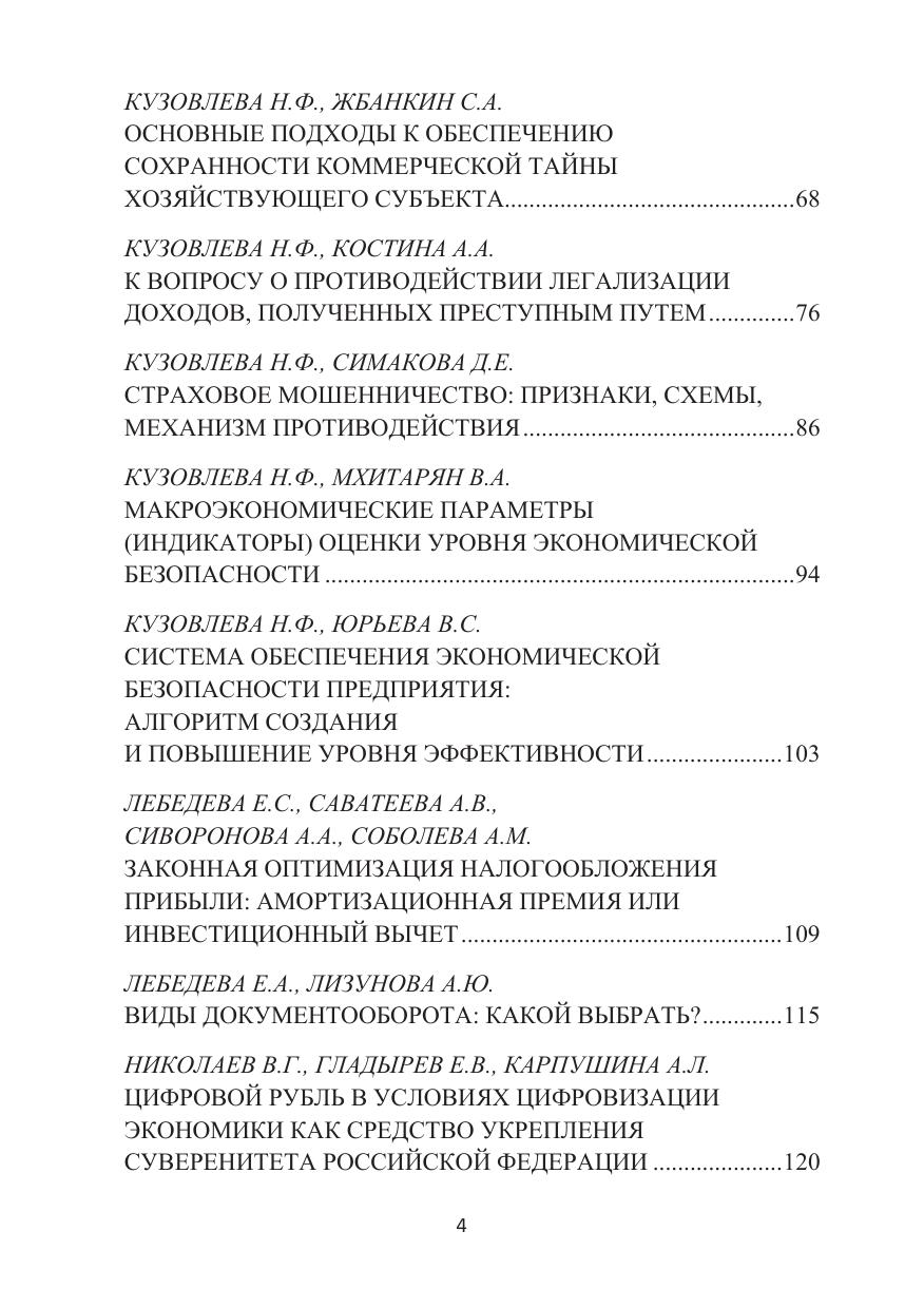 Сборник включает научные статьи профессорско-преподавательского состава, научные статьи и тезисы научных работ студентов, подготовленные по итогам проведенных научно-практических конференций, круглых столов в 2020–2021 гг. на кафедре экономической экспертизы и финансового мониторинга и кафедре финансового учета и контроля Института комплексной безопасности и специального приборостроения МИРЭА – Российского технологического университета.